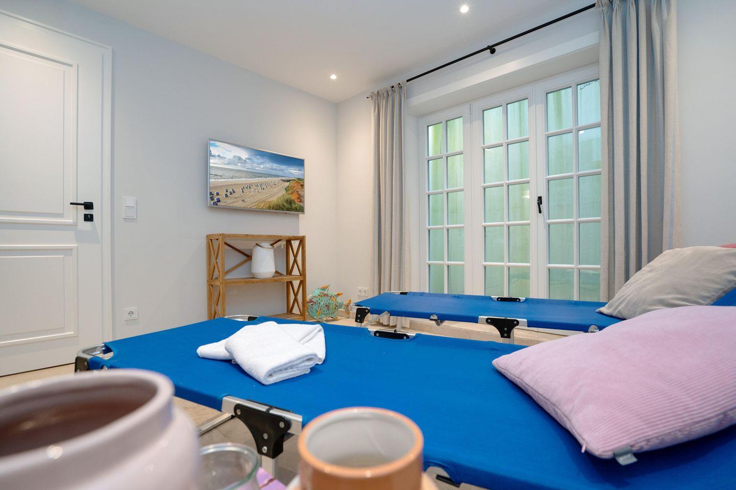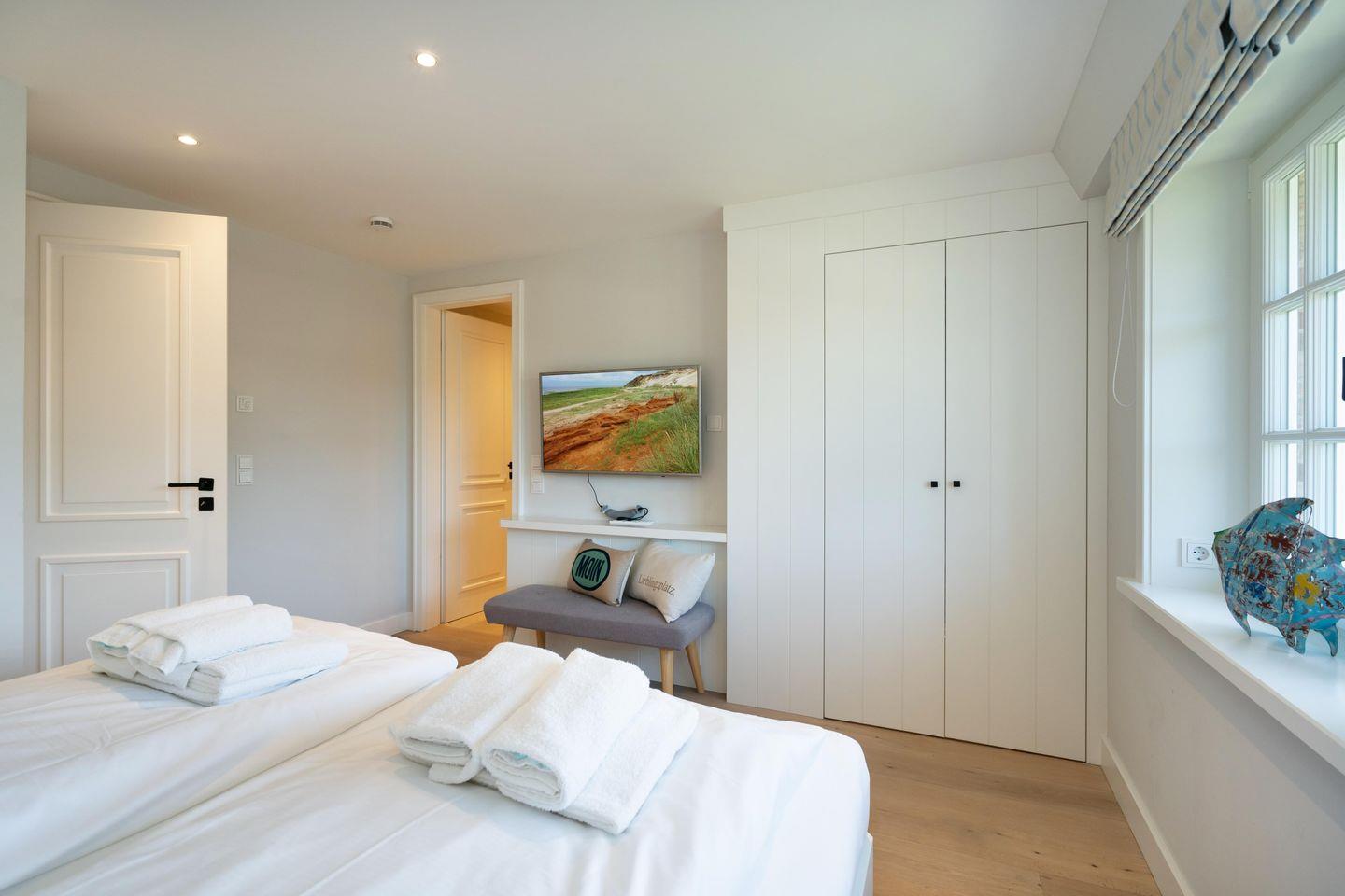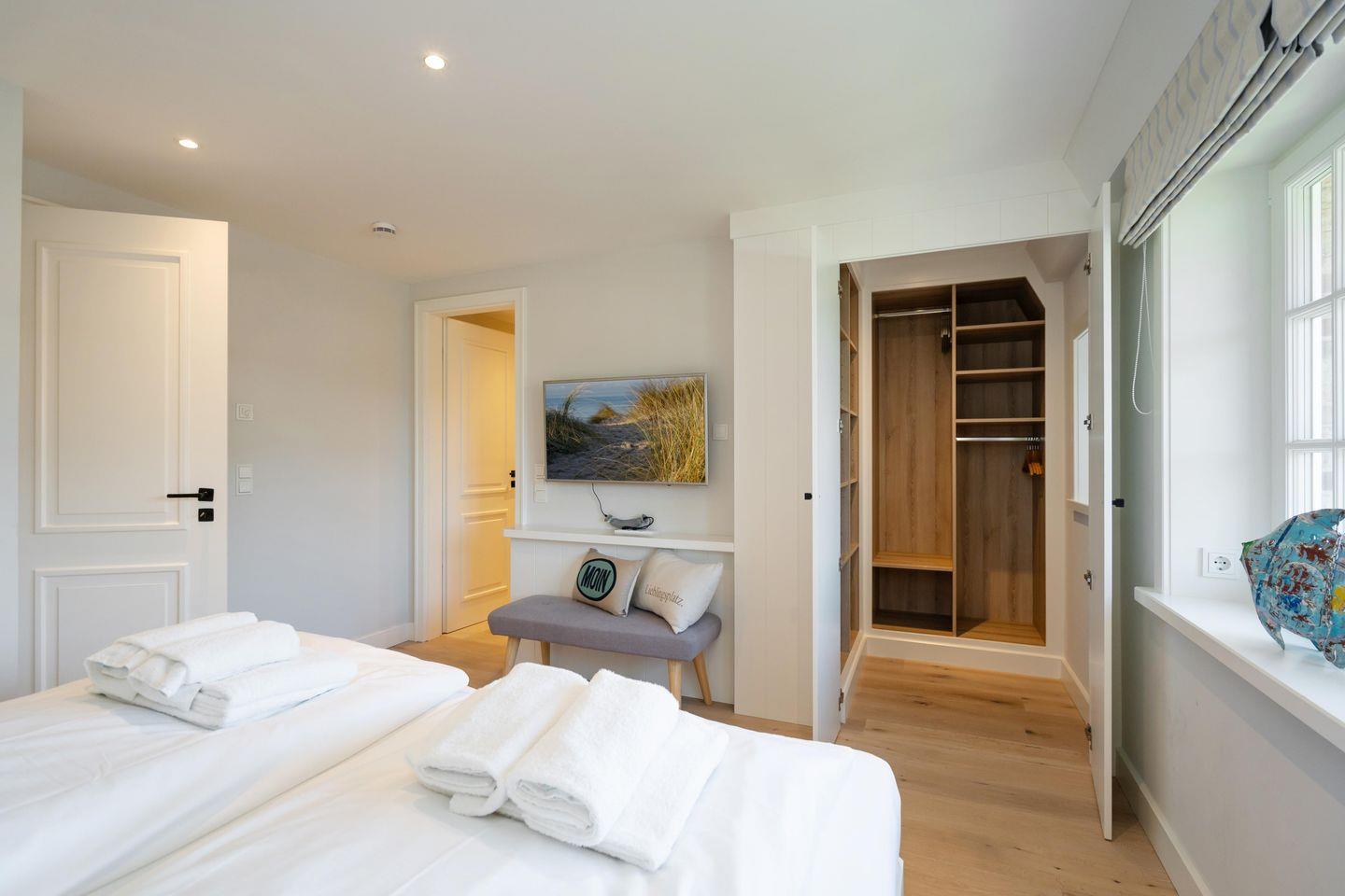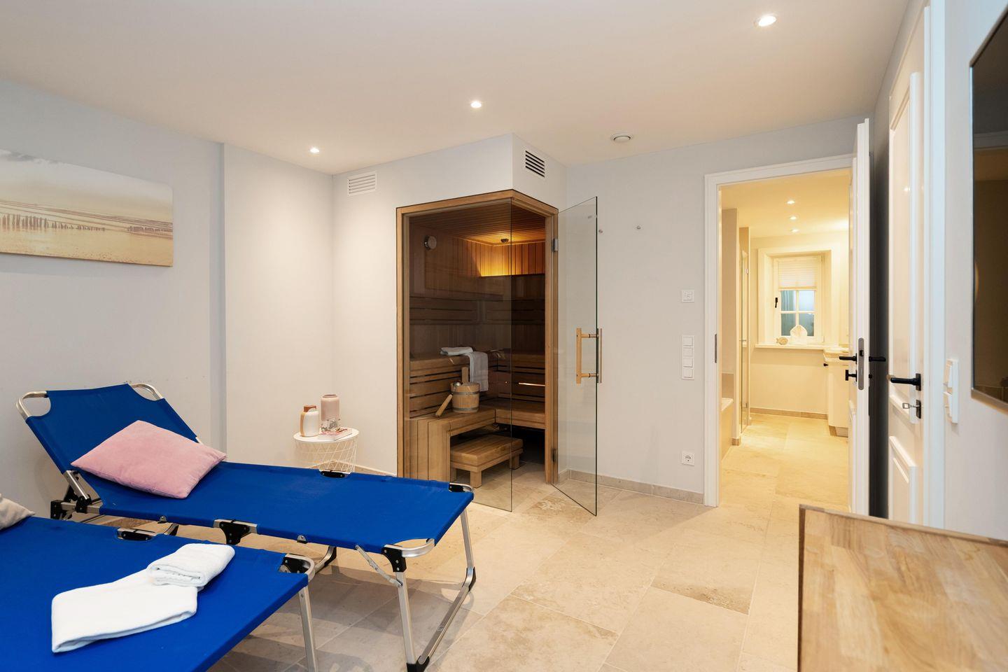 Ein Traum unter Reet. Diese friesische Doppelhaushälfte für bis zu 7 Personen im Herzen Keitums bietet auf 180 m² einen Mix aus Modernität und absoluten Luxus. Der lichtdurchflutete Wohnbereich mit offener Küche bietet viel Platz zum gemeinsamen Kochen, Essen und Verweilen. Auf der angrenzenden Terrasse samt Gartenmöbeln und Strandkorb (in der Saison) lassen sich viele Sonnenstunden verbringen. An kalten Tagen sorgt der Kachelofen im Wohnbereich für warme Temperaturen. Im Eingangsbereich befindet sich ein Gäste-WC. Über eine Treppe gelangen Sie ins Obergeschoss, dort erwarten Sie zwei Schlafzimmer sowie zwei großzügige Bäder. Im Dachgeschoss befindet sich ein Schlafzimmer mit Einzelbetten. Ein weiteres großzügiges Schlafzimmer sowie Badezimmer erwartet Sie im Souterrain. Dort dient Ihnen auch - besonders in den Wintermonaten - eine finnische Sauna mit Ruheraum als Wellnessoase. Alle Schlafräume sind durch hochwertige Tischlereinbauten ausgestattet und bieten somit viel Stauraum für einen Sylturlaub. WLAN, einen zugehörigem PKW-Stellplatz am Haus inkl. E-Ladestation sowie ein Waschtrockner stehen Ihnen zur Verfügung. Haustiere sind willkommen.