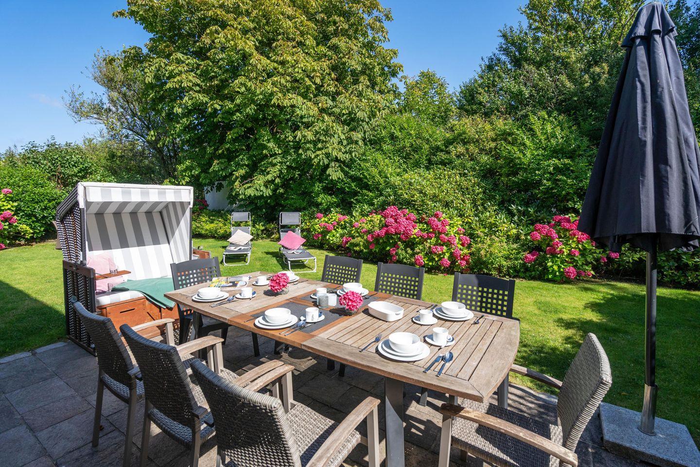 Traumhaftes ca. 180 m² großes Reetdachhaus im Herzen Keitums für bis zu 7 Personen mit drei Bädern, Wellnessbereich und schönem Garten. Inklusive WLAN, PKW-Stellplatz und Strandkorb (in der Saison).