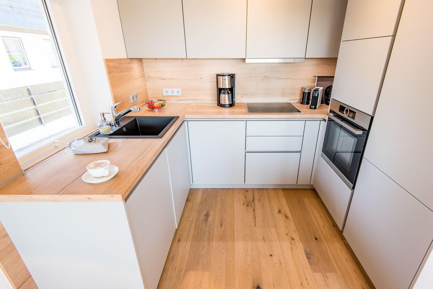 Die offene und komplett neue Küche ist hochwertig ausgestattet und lässt keine Wünsche offen. Mit Ceranfeld, Geschirrspüler und weiteren modernen Annehmlichkeiten steht Ihnen alles zur Verfügung, um Ihre Lieblingsgerichte in stilvollem Ambiente zuzubereiten.