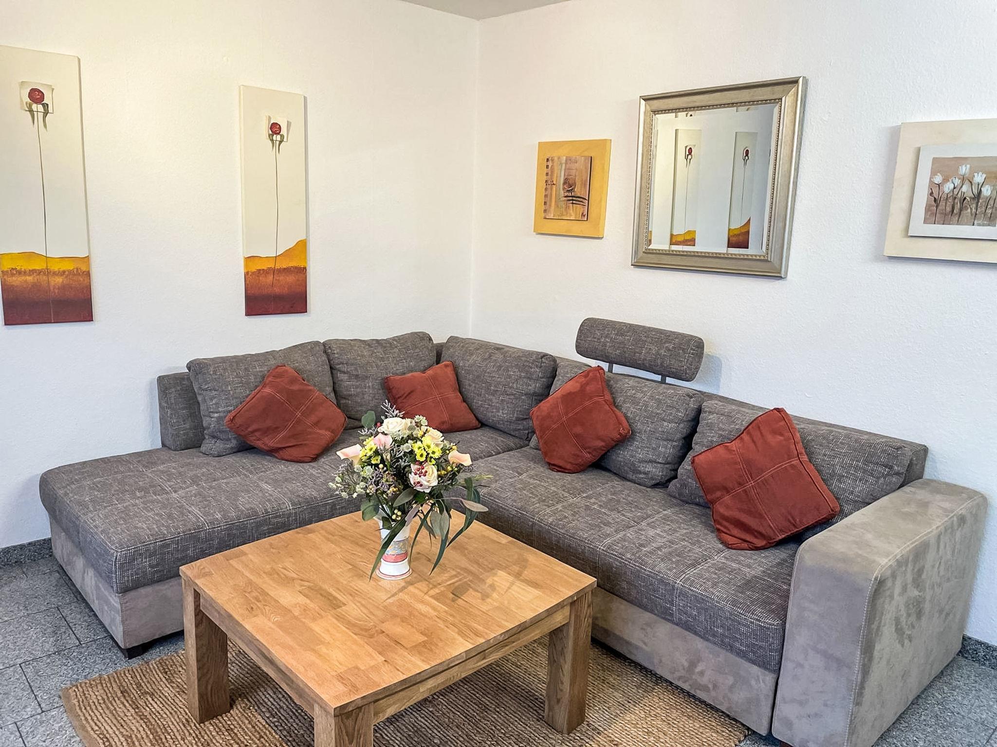 "Fewo 1 in ruhigem Haus", 2-Zimmer-Wohnung 40 m2, im Erdgeschoss. Komfortabel eingerichtet: Wohn-/Esszimmer mit Sat-TV (Flachbildschirm), Radio, CD und DVD. 1 Zimmer mit 1 Doppelbett und Sat-TV (Flachbildschirm). Kochnische (Backofen, Geschirrspüler, 4 Glaskeramikplatten, Toaster, Wasserkocher, Mikrowelle, elektrische Kaffeemaschine) mit Bar, Esstisch. Dusche/WC. Heizung. Zur Verfügung: Babybett, Haartrockner. Internet (WLAN, gratis). Parkplatz (1 Auto) beim Haus. Bitte beachten: Nichtraucher-Unterkunft. Maximal 1 Haustier/Hund erlaubt. Rauchmelder.