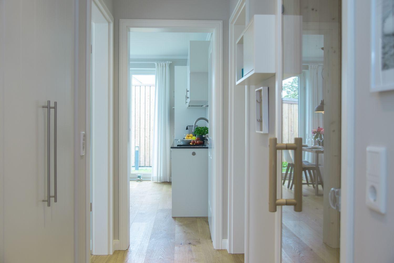 Die Wohnung „Küstenjung“ verfügt zudem über eine finnische Sauna. Die Wohnungen wurden mit Liebe zum Detail ausgestattet und verfügen neben ansprechendem umfangreichen Markengeschirr und -besteck sowie eine Nespresso Kaffeemaschine, eine im Backofen integrierte Mikrowelle, ein Induktionskochfeld und eine Waschmaschine mit integriertem Trockner. Geschirrspülmaschine, Toaster und Wasserkocher sind selbstverständlich. Ebenso vorhanden sind neben den üblichen anderen Küchenutensilien Bügeleisen samt Brett sowie Staubsauger und Fön und ein Grundvorrat an Reinigungsutensilien. Im Wohnzimmer und in den Schlafräumen befinden sich Smart-TV´s über die Ihnen mindestens teilweise auch unentgeltlich Netflix angeboten wird. Ebenso gehört zur Ausstattung eine bluetooth-fähige Musikbox sowie kostenfreies Wlan.