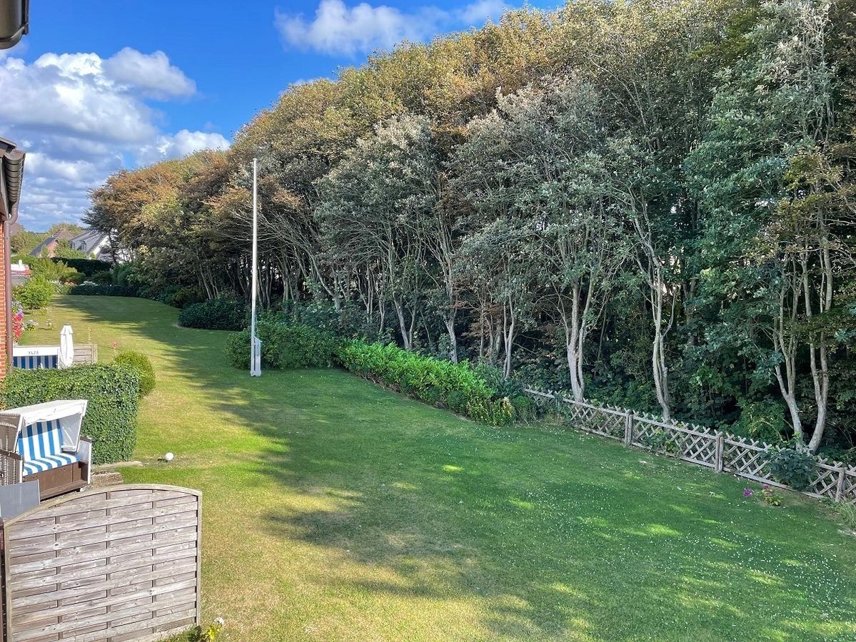 Die ruhig in einer Sackgasse gelegene Ferienwohnung liegt im Obergeschoss eines 4-Parteien-Hauses und verfügt ein großzügiges und lichtdurchflutetes Wohnzimmer mit Zugang zum großen Balkon. Vom Wohnzimmer haben Sie einen herrlichen Blick in das davor liegende Waldstück und vom Balkon schauen Sie in den Garten und zur Düne. Ein Strandkorb und diverse Terrassenmöbel laden auf dem großen Balkon zum gemütlichen Sitzen und Entspannen ein.