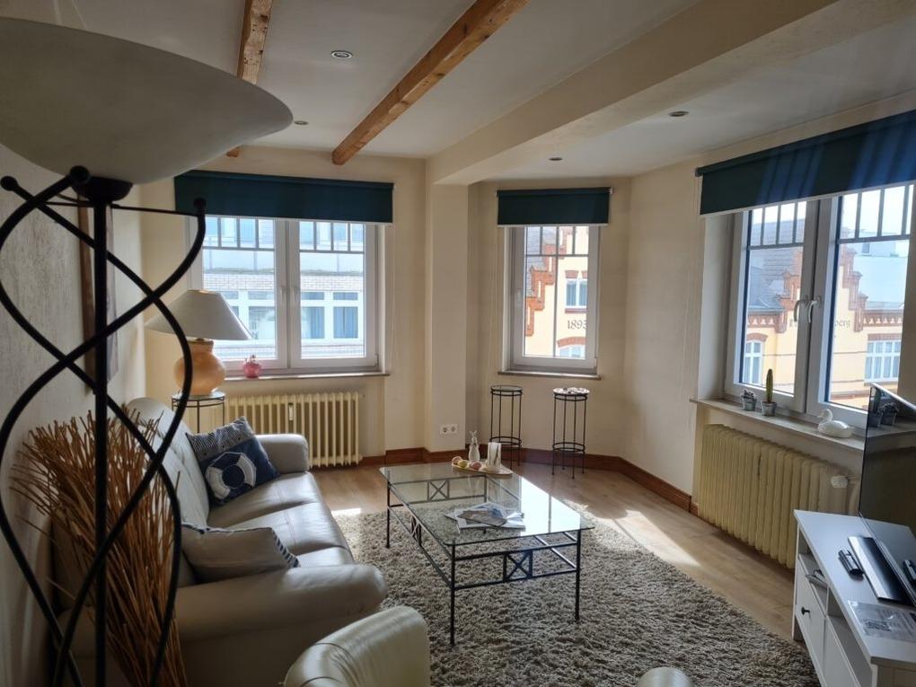 Die Ferienwohnung befindet sich im 3. Obergeschoss mit Ausblick auf die Friedrichstraße. Holzboden, helle Möbel und nicht zuletzt der besondere Charme des Hauses gehören zu den Räumlichkeiten. Die Badezimmer in unserem Gästehaus sind alle topmodern und selbstverständlich in sehr gepflegtem Zustand.