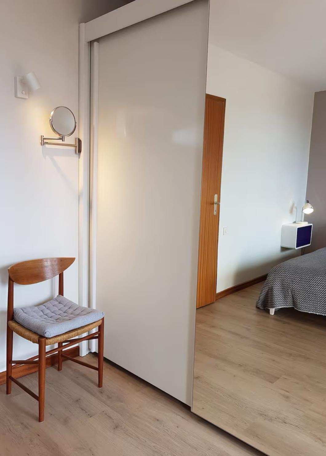 - Schlafzimmer mit einem Doppelbett (160 x 200 cm, zwei Matratzen) und großem Kleiderschrank