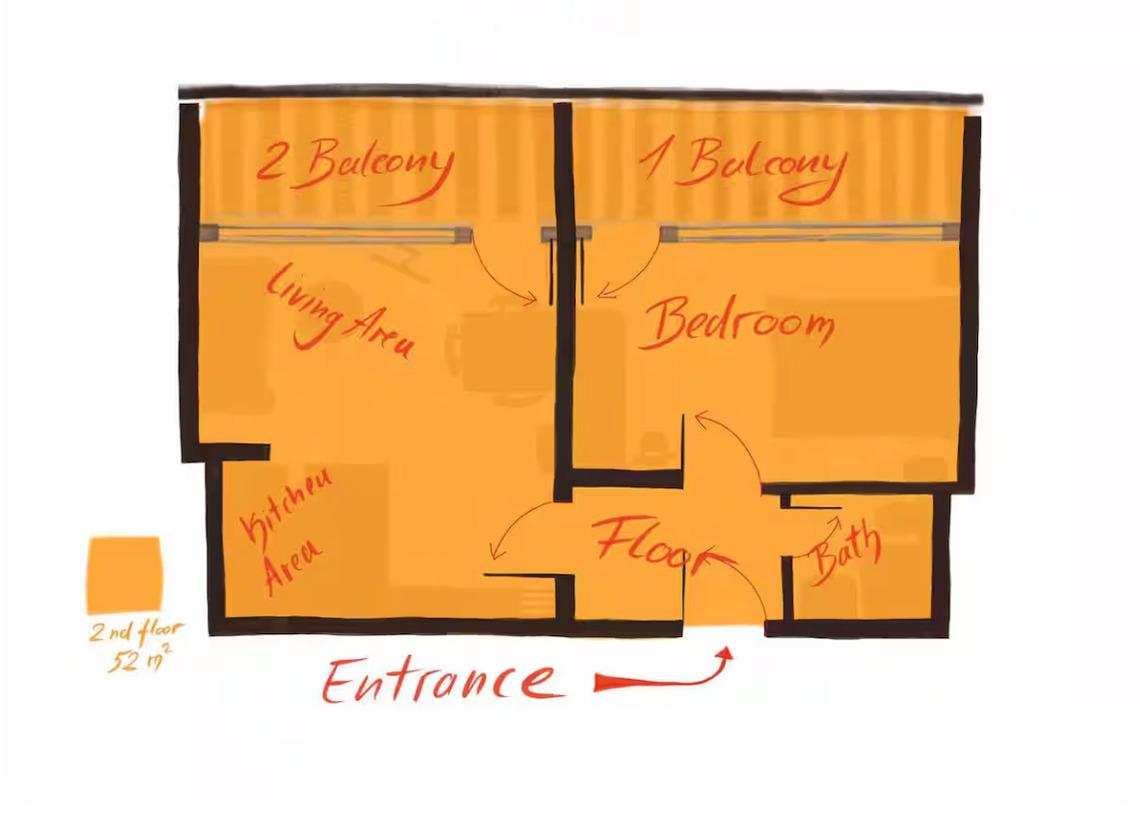 Die gemütliche helle Wohnung ist 54 qm groß, befindet sich im 2. Stock und ist bequem über den Aufzug und ein paar Treppenstufen erreichbar. Sie ist ideal für 2 Personenund besteht aus: