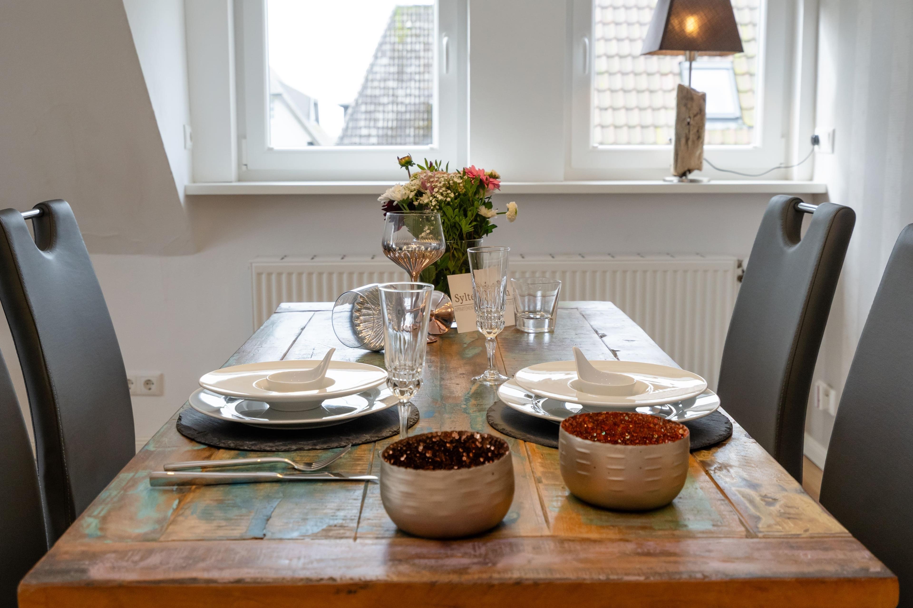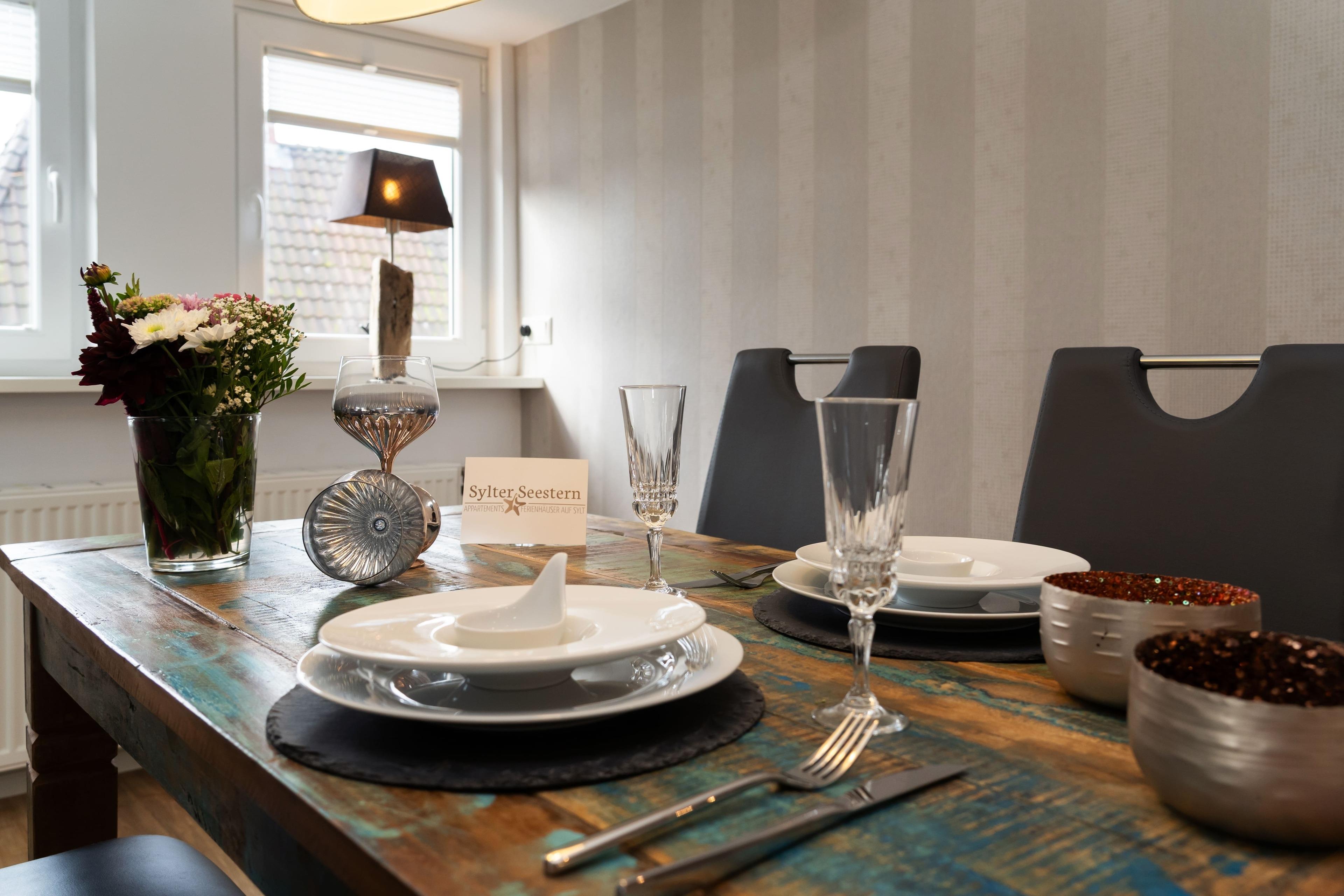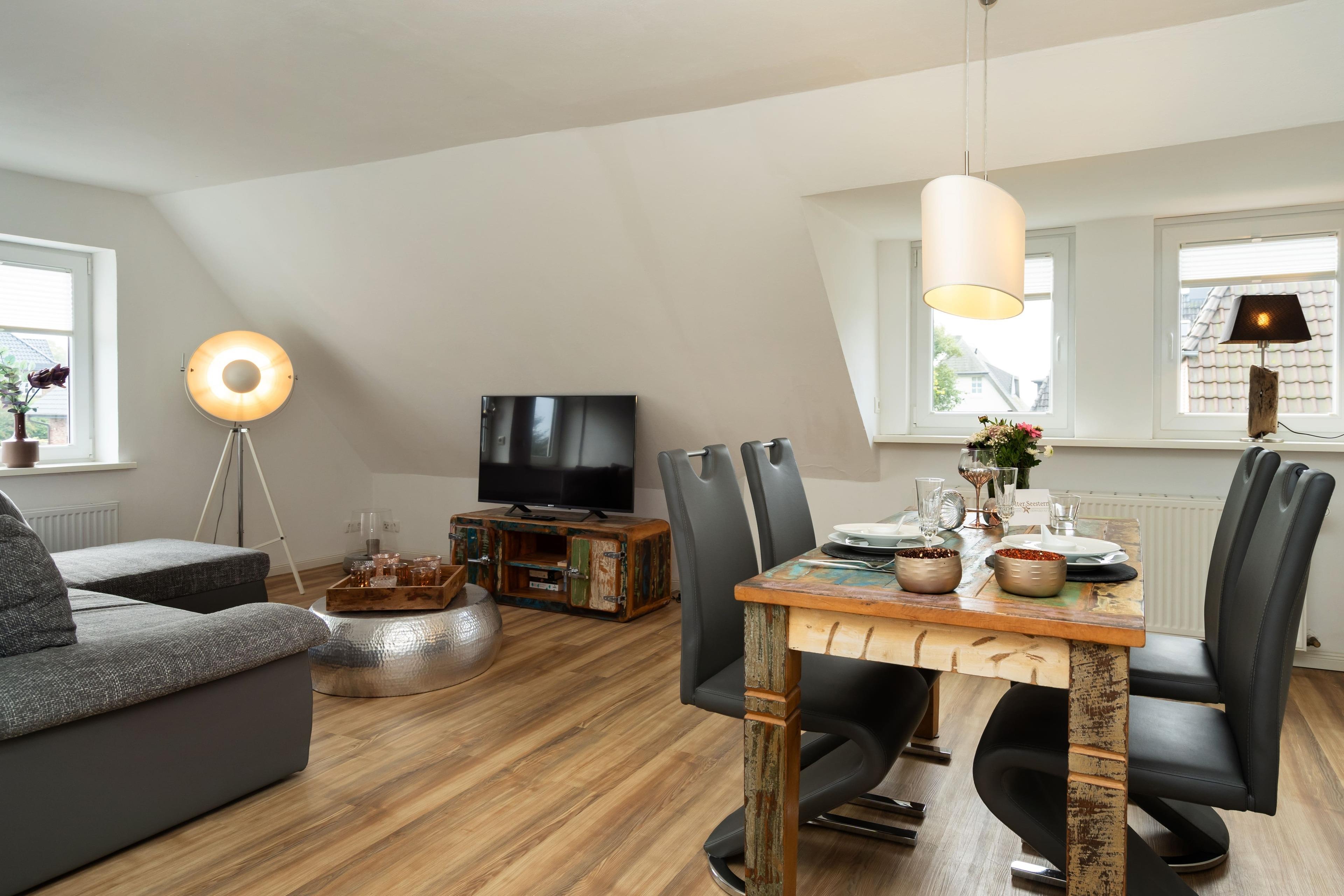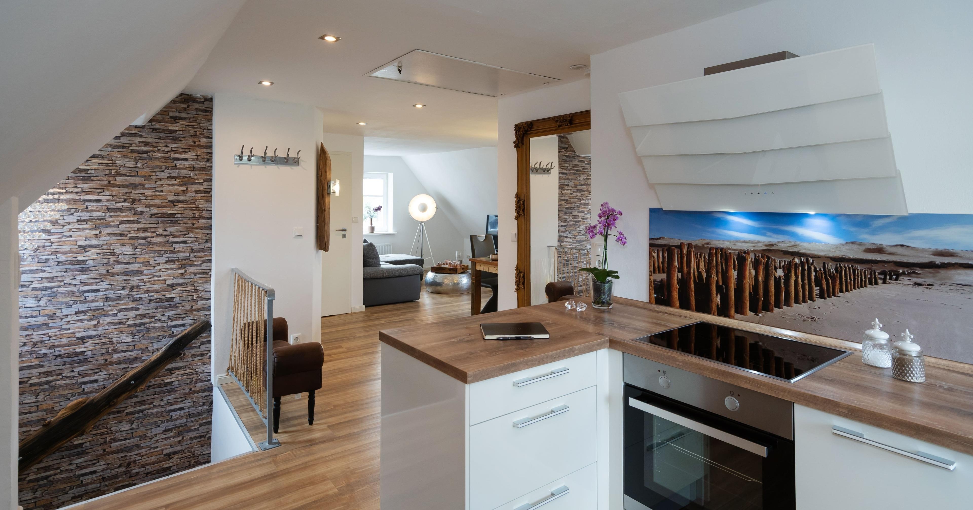 Gemütliches Seepferdchen Loft auf Sylt für 2 Personen mit moderner Küche und einem Schlafzimmer.