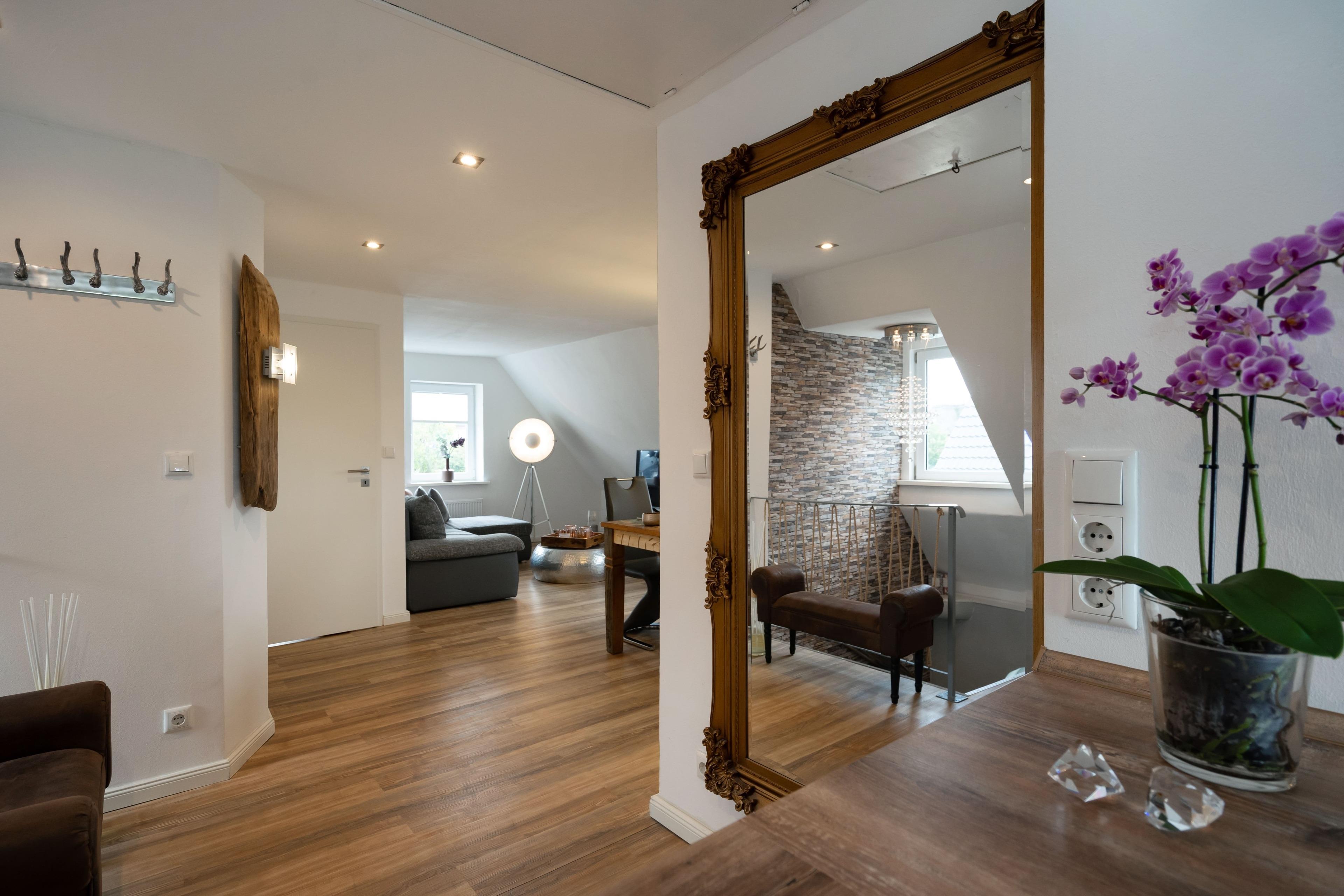 Willkommen im bezaubernden Seepferdchen Loft – Ihrem gemütlichen Rückzugsort für unvergessliche Momente! Das charmante Loft bietet Platz für zwei Personen und verfügt im Wohnzimmer sogar über eine komfortable Schlafcouch, ideal für alle, die getrennt schlafen möchten. Die angrenzende Essecke lädt zum entspannten Verweilen ein und schafft den perfekten Rahmen für gemeinsame Mahlzeiten. Die moderne, top ausgestattete Küche bietet alles, was Sie brauchen, um köstliche Gerichte zuzubereiten und Ihre kulinarischen Wünsche zu erfüllen. Lassen Sie sich vom einzigartigen Charme des Seepferdchen Lofts verzaubern und genießen Sie eine unvergessliche Zeit in einer stilvollen und behaglichen Atmosphäre!