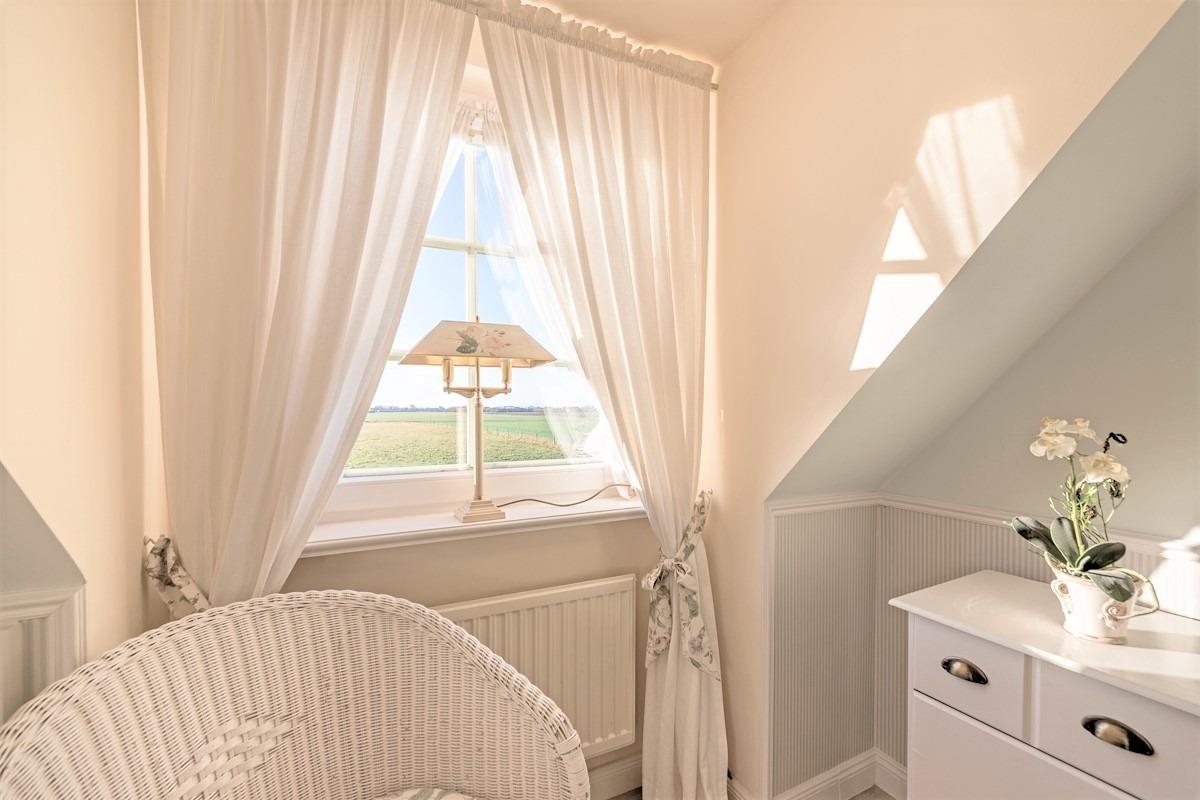 In fantastischer Lage mit Traumblick bis zum Deich und bei gutem Wetter bis auf die Nachbarinseln kann man hier die absolute Ruhe und Erholung geniessen. Zwei Schlafzimmer (eins mit Doppelbett und eins mit 2 Einzelbetten) versprechen erholsame Urlaubsträume und haben einen Flat TV wie auch die Wohnstube mit Traumblick. In der Küche befindet sich eine Essecke und der freistehende Herd mit Induktion. Das Bad mit großer Dusche, Whirlpool, WC und eingebautem Waschtisch lässt keine Wünsche offen.