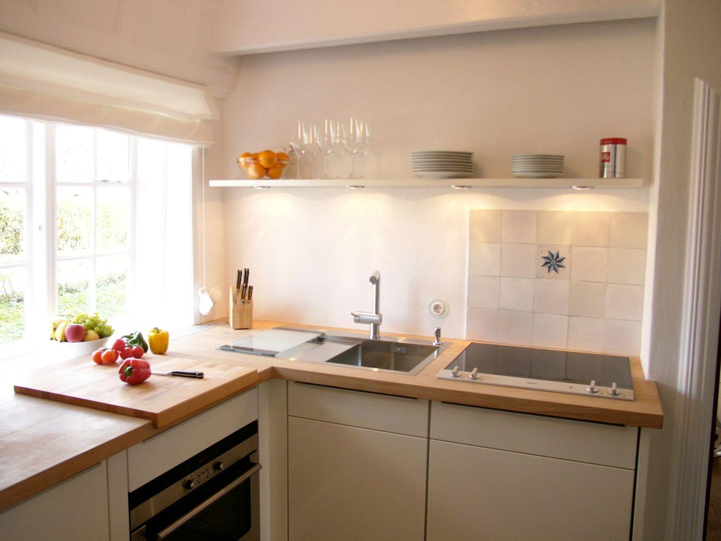 Vom Eingangsbereich gelangen Sie direkt in die komfortabel ausgestattete Küche. Ein großes Fenster lässt reichlich Licht einfallen und macht das Kochen zur Freude. Neben einem Herd und einem Backofen steht Ihnen ein Geschirrspüler sowie eine ausgewählte Variation an Geschirr, Gläsern und Küchenutensilien zur Verfügung. Kaffeeliebhaber kommen dank der vorhandenen Nespressomaschine ebenfalls voll auf Ihre Kosten.