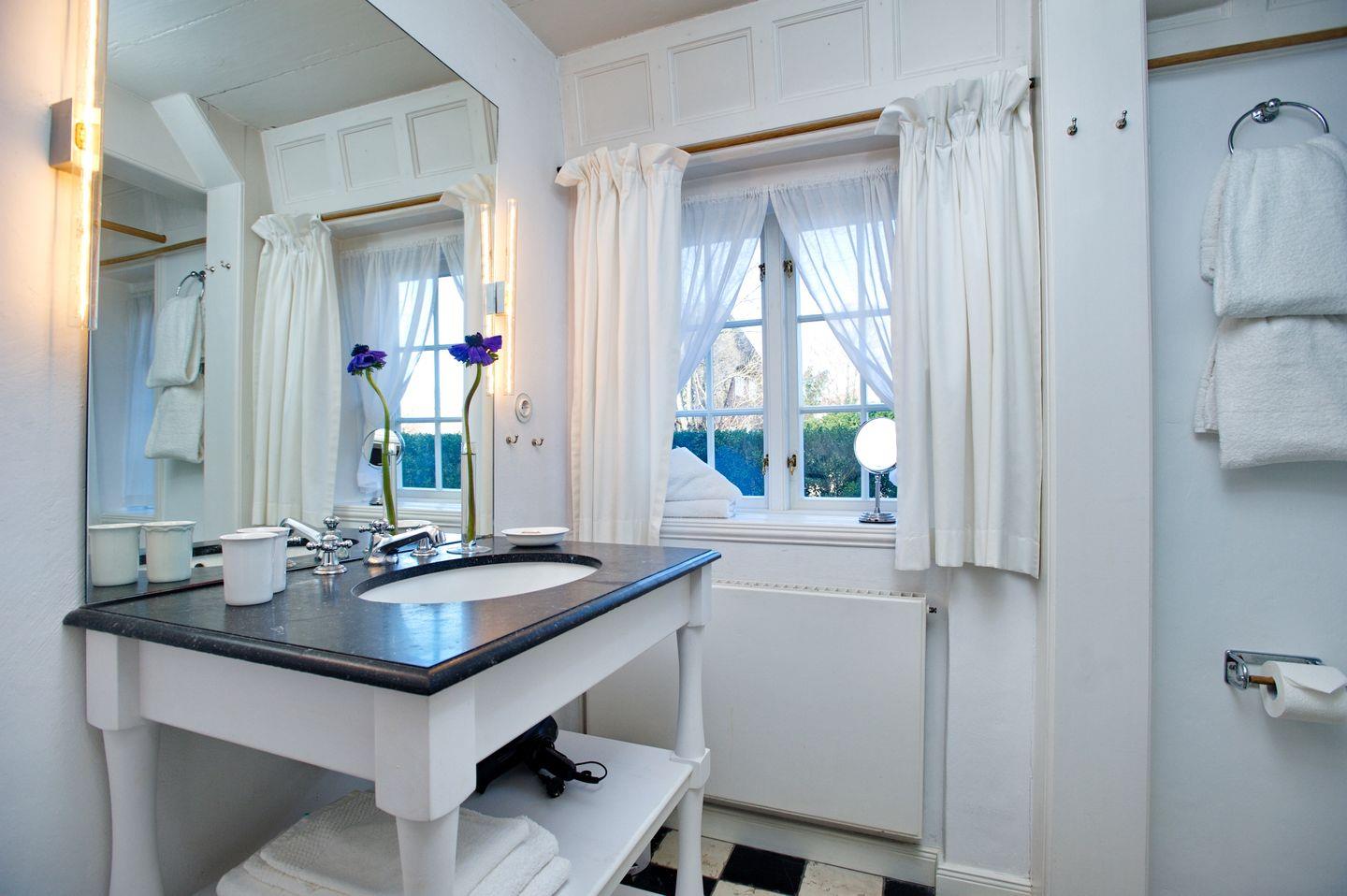Das Badezimmer rundet die Kapitänswohnung ab. Auch hier sorgt ein Fenster für reichlich Lichteinfall. Der individuelle Waschtisch sowie die geräumige Dusche sorgen auch im Bad für allen wünschenswerten Komfort. Haartrockner und Kosmetikspiegel stehen zur Verfügung.
