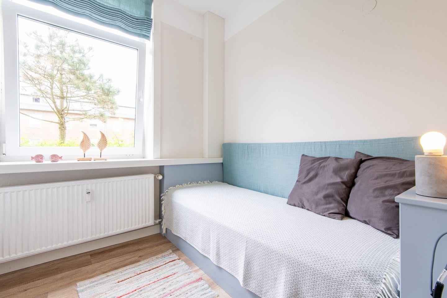 - Ein Schlafraum ist mit einem Einzelbett (80 x 190cm) ausgestattet.