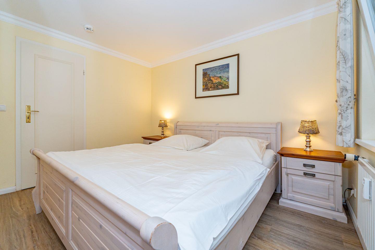 Mit zwei Schlafzimmern, einem Badezimmer und einer offenen Küche erwartet Sie hier ein gemütliches Zuhause für bis zu drei Gäste. Die Terrasse mit Strandkorb (saisonal) lädt zum Entspannen ein. Ein PKW Stellplatz steht Ihnen am Haus zur Verfügung.