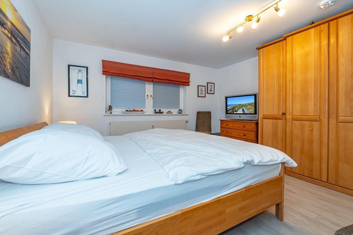 Zentral in Westerland, gemütlich eingerichtet begrüßt Sie die zwei Zimmer Ferienwohnung auf 55 qm über zwei Etagen. Im Erdgeschoss befindet sich das helle, offene Wohn- und Esszimmer mit Ecksofa und Flachbildfernseher, Stereoanlage sowie die Essecke. Die offene Küche mit Mikrowelle, Cerankochfeld (Induktion), Backofen und Geschirrspüler ist mit allem ausgestattet was es bedarf um köstliche Mahlzeiten zuzubereiten. Ein kleines Frühstück lässt sich bequem am Tresen einnehmen. Vom Wohnbereich aus gelangen Sie auf die wunderbare Süd/ West Terrasse, welche einlädt die angenehme Sylter Sonne ausgiebig zu genießen. Im Souterrain erwarten Sie das Schlafzimmer mit komfortablem Doppelbett, Kleiderschrank und Flat TV sowie das Badezimmer mit Regendusche, Waschtisch, WC und Haartrockner. Als besonderer Service steht Ihnen ein Waschtrockner zur Verfügung. Ein eigener Parkplatz steht Ihnen auf dem Grundstück zur Verfügung.