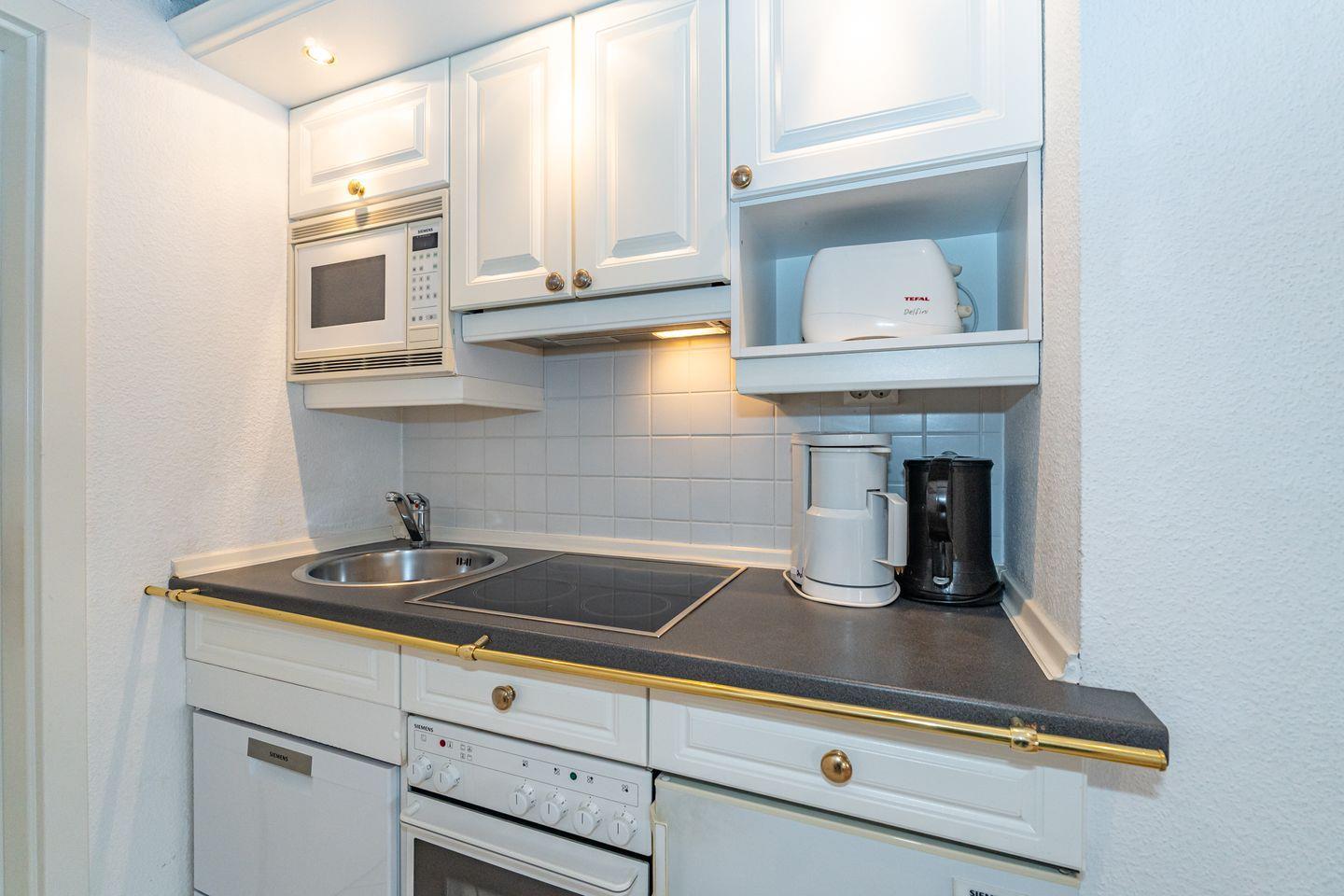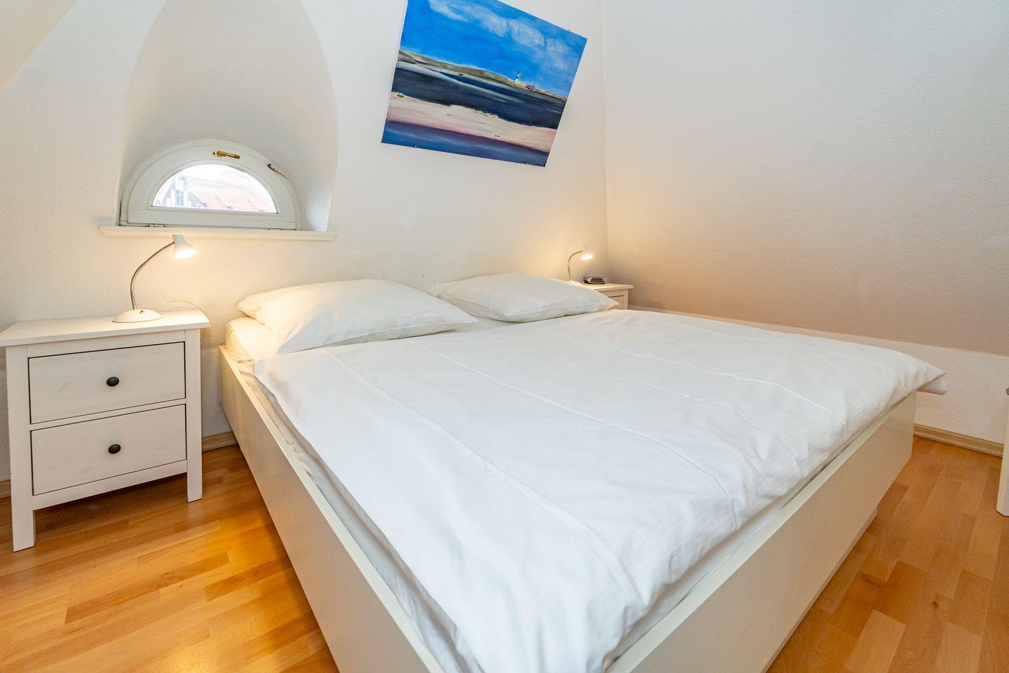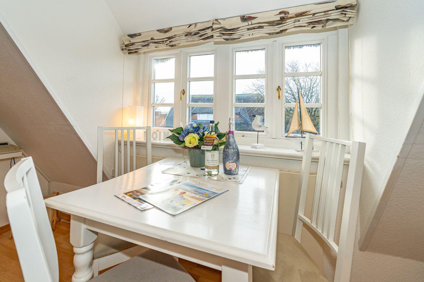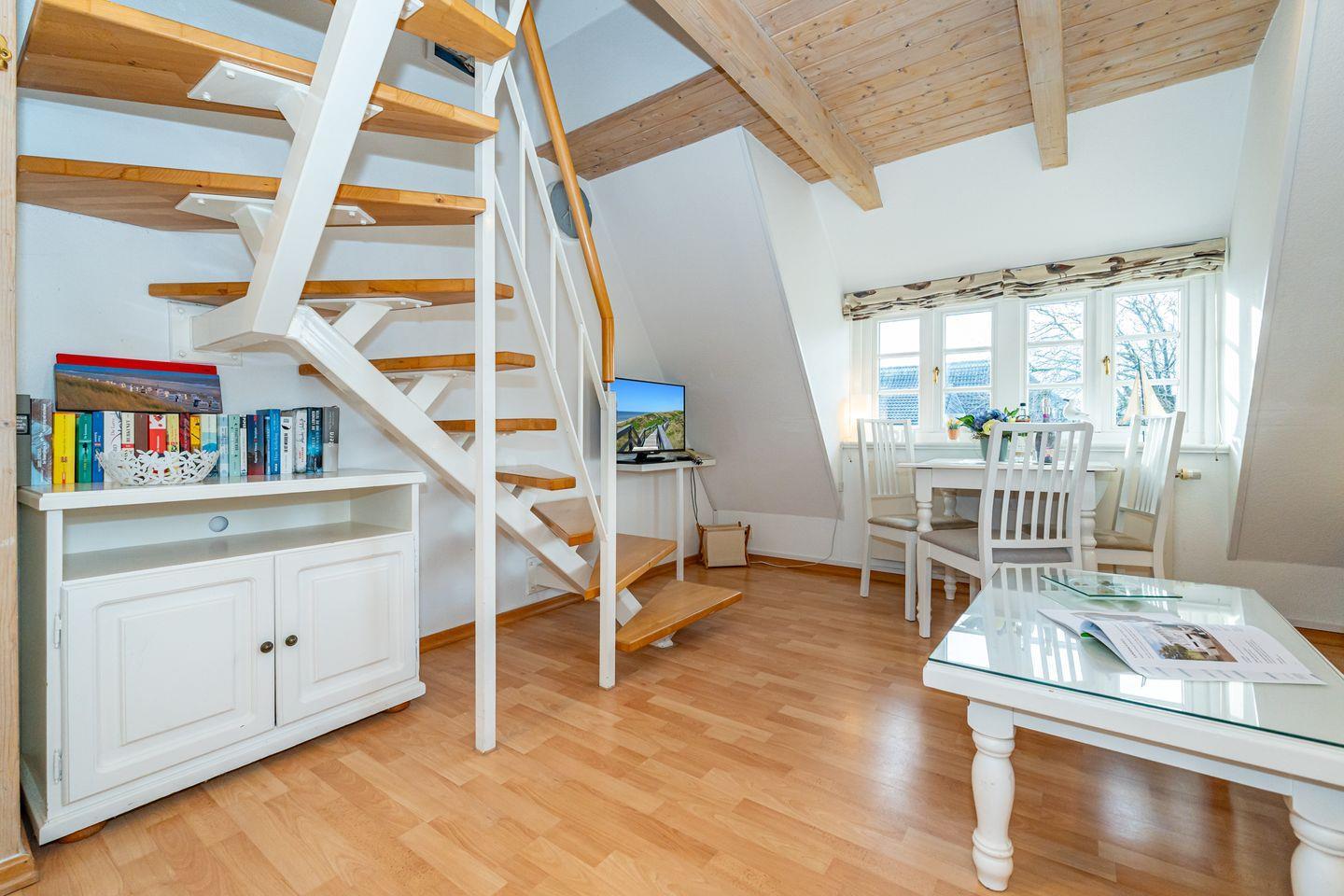 Gemütliche Ferienwohnung unter Reet in Westerland auf Sylt, ideal für zwei Personen mit moderner Ausstattung und eigenem Parkplatz.