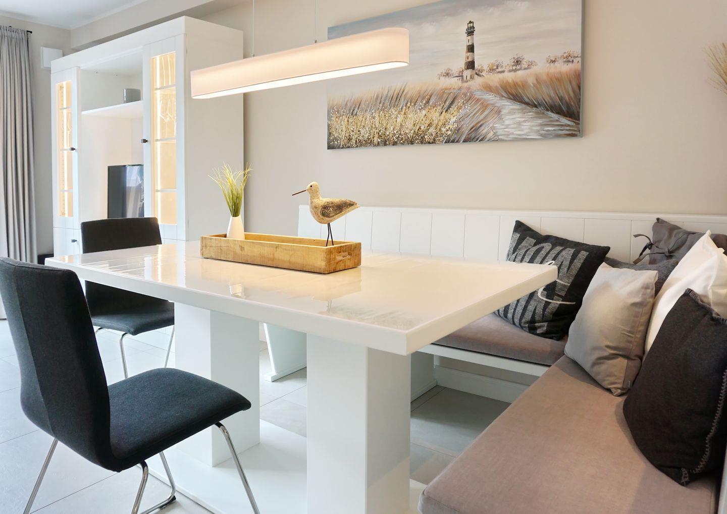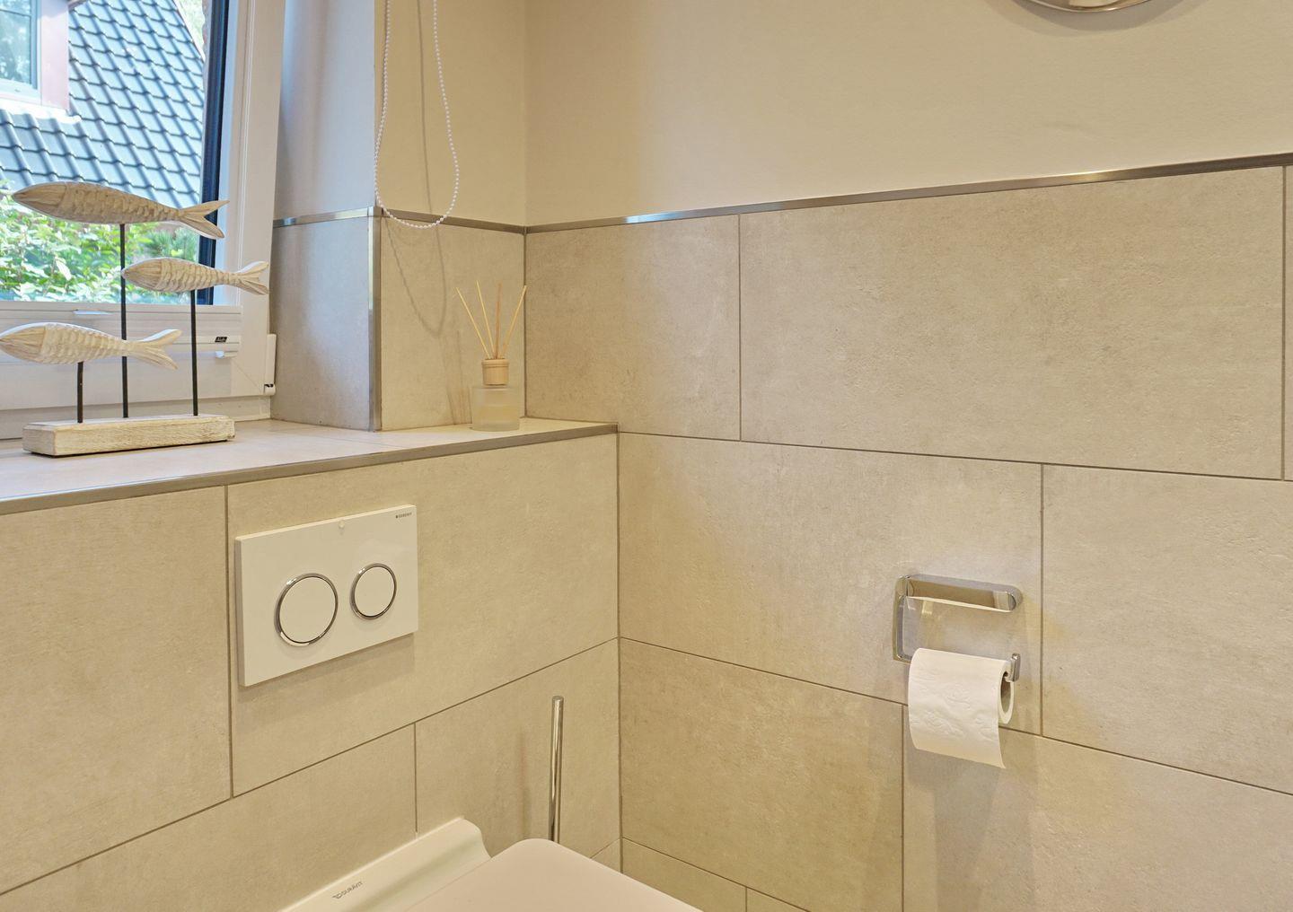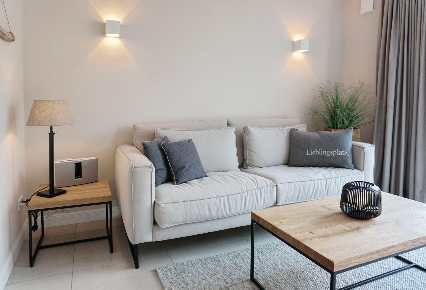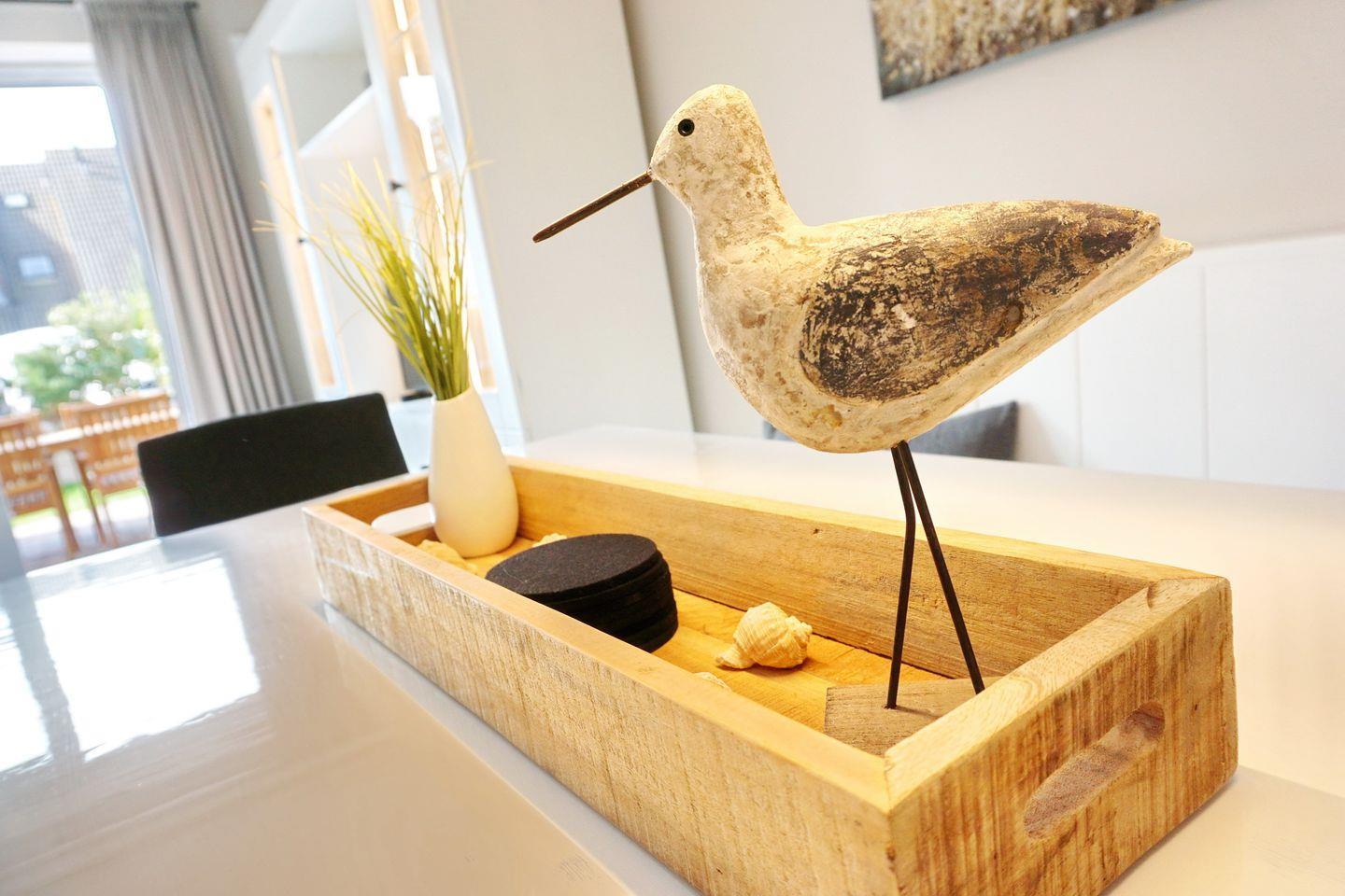 Im Erdgeschoß befindet sich die offene Küche (mit Mikrowellen-Backofen-Kombi, Cerankochfeld, Geschirrspüler, Nespresso-Maschine) mit dem Ess- und Wohnbereich und einem separaten Gäste-WC. Der Wohnbereich verfügt über TV, W-Lan, Bose-Radio mit Bluetooth-Funktion. Die Süd-Terrasse mit Gartenmöbeln und Strandkorb (April-Oktober) lädt zum Verweilen ein. Der Parkplatz befindet sich direkt vor dem Haus.