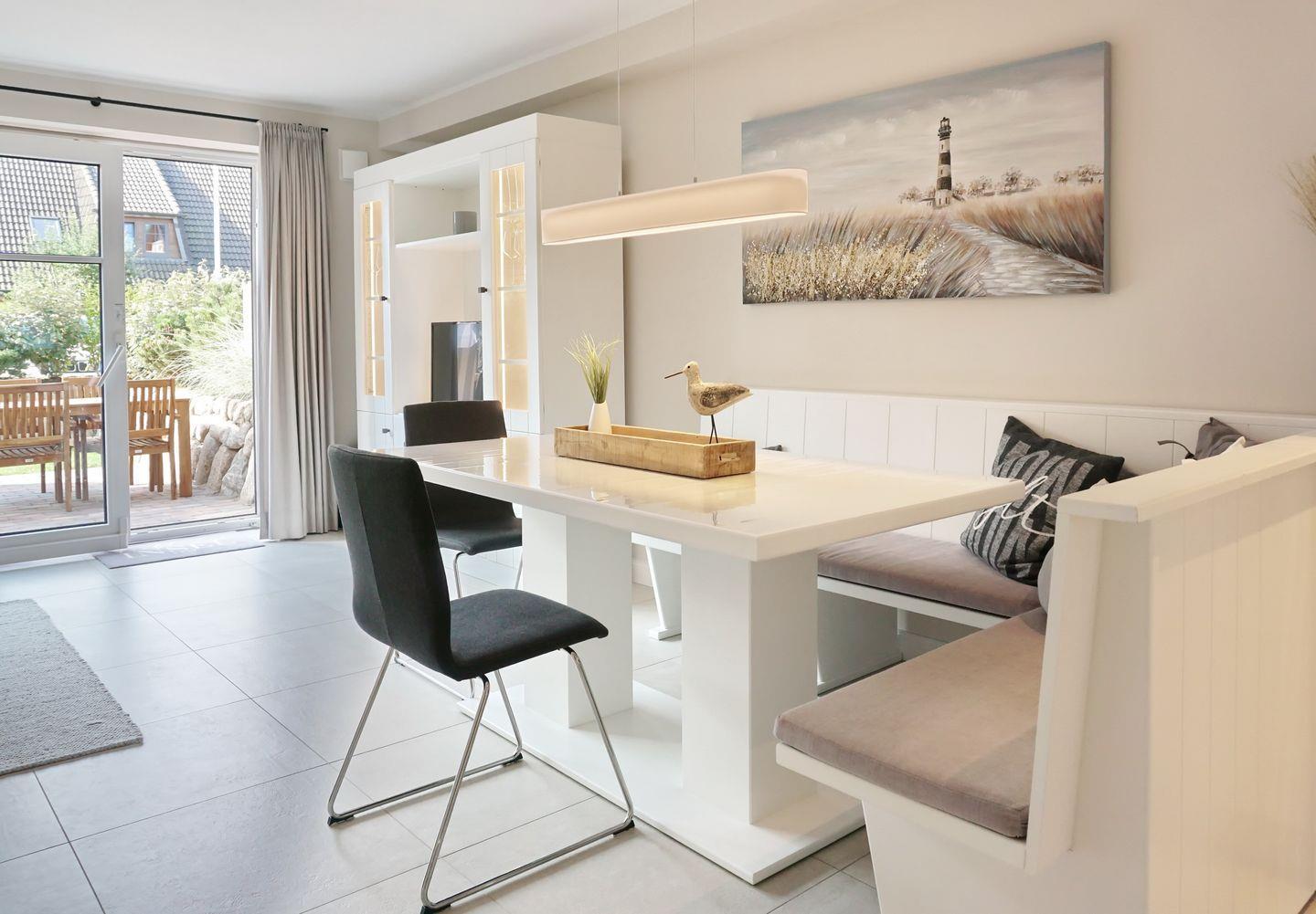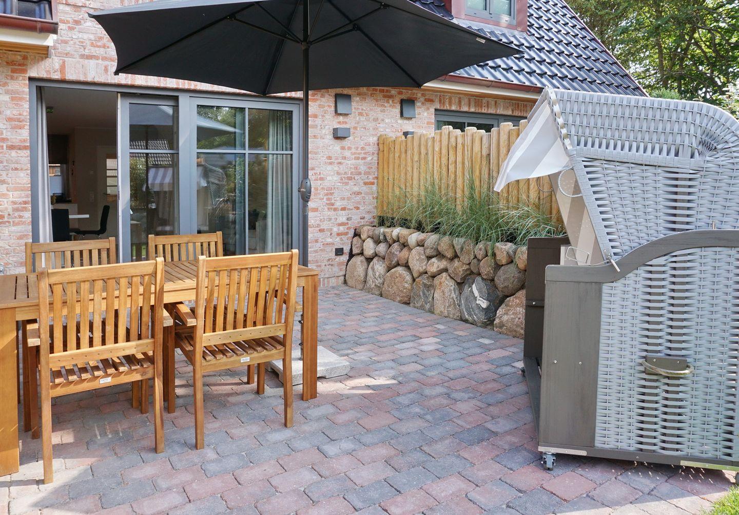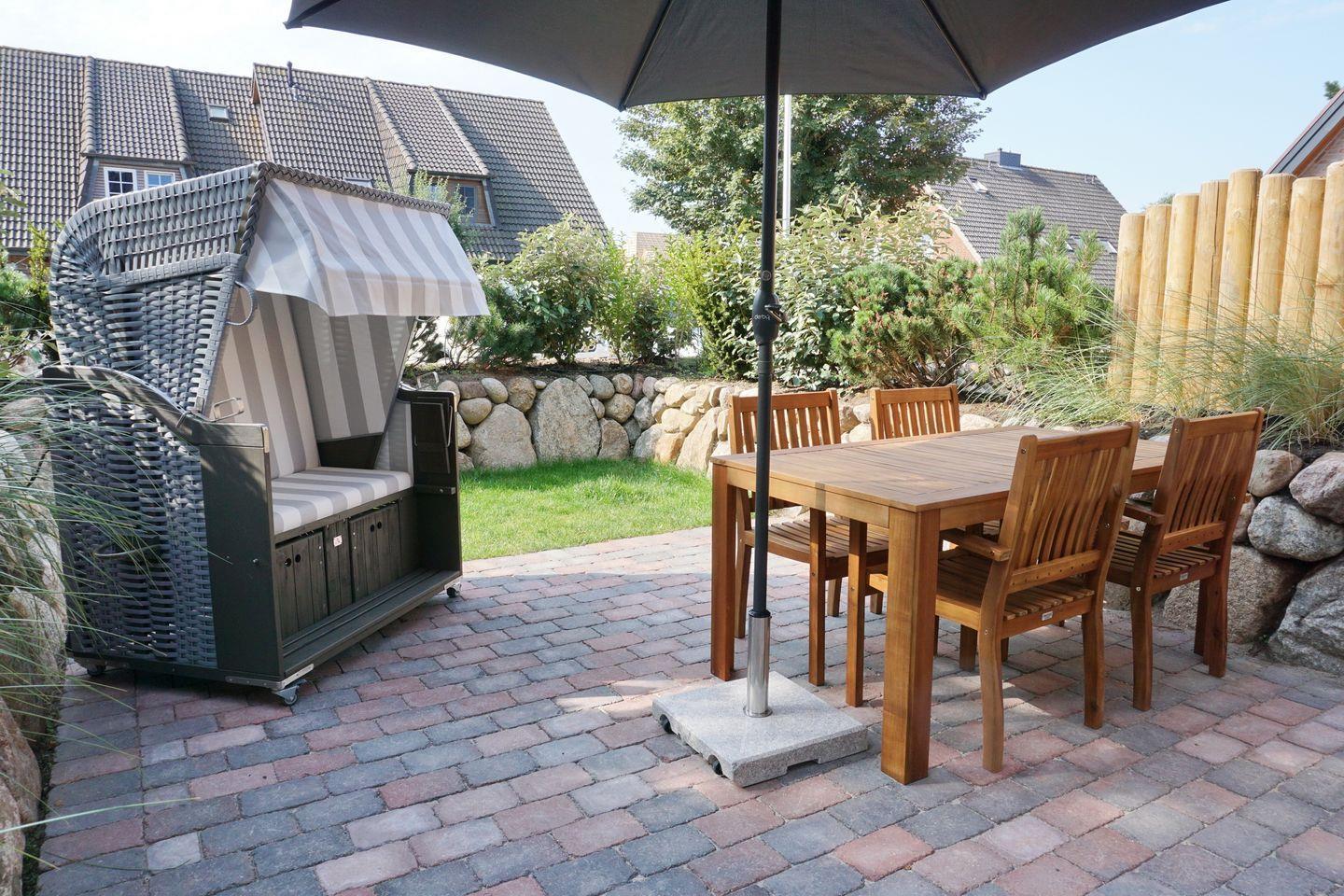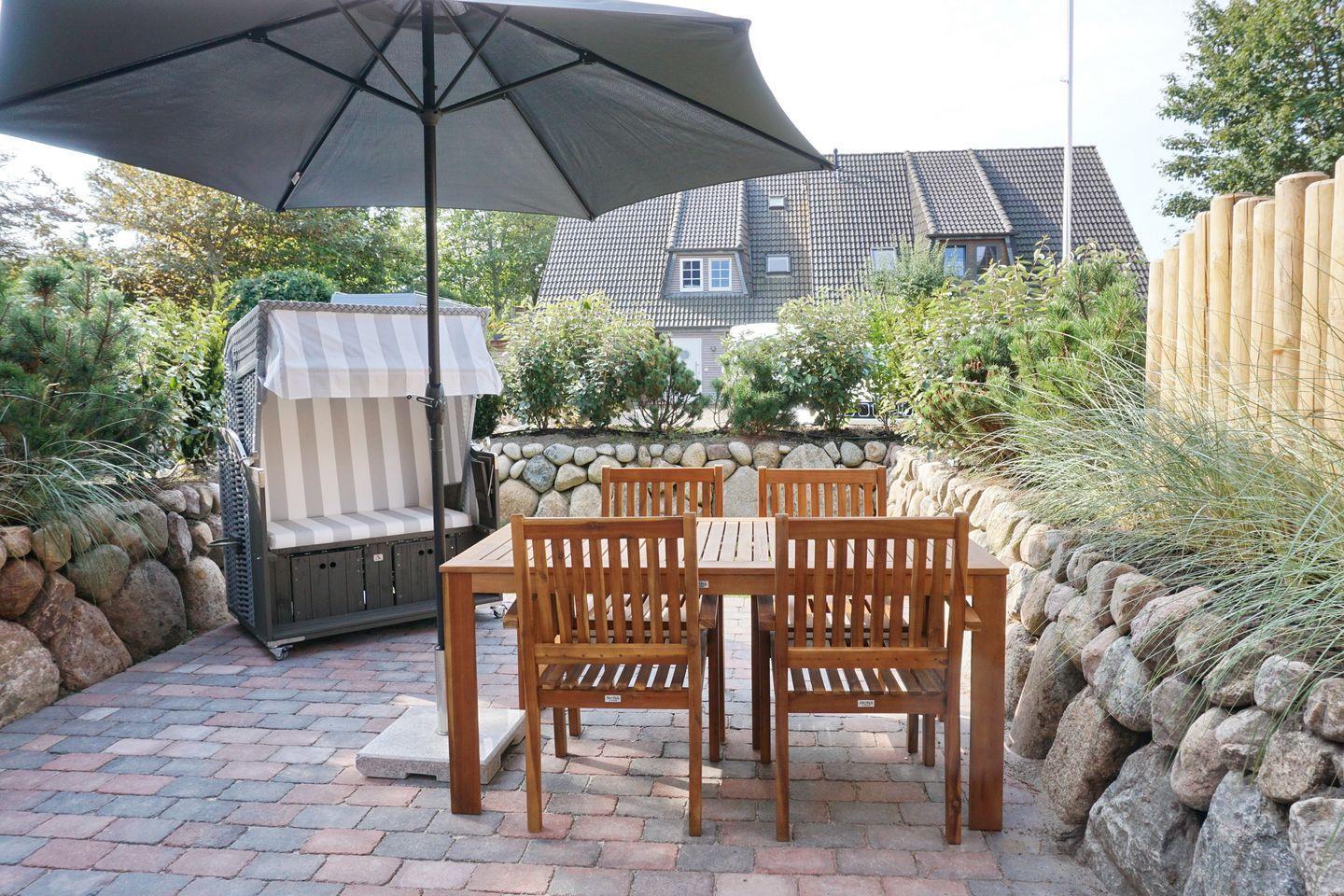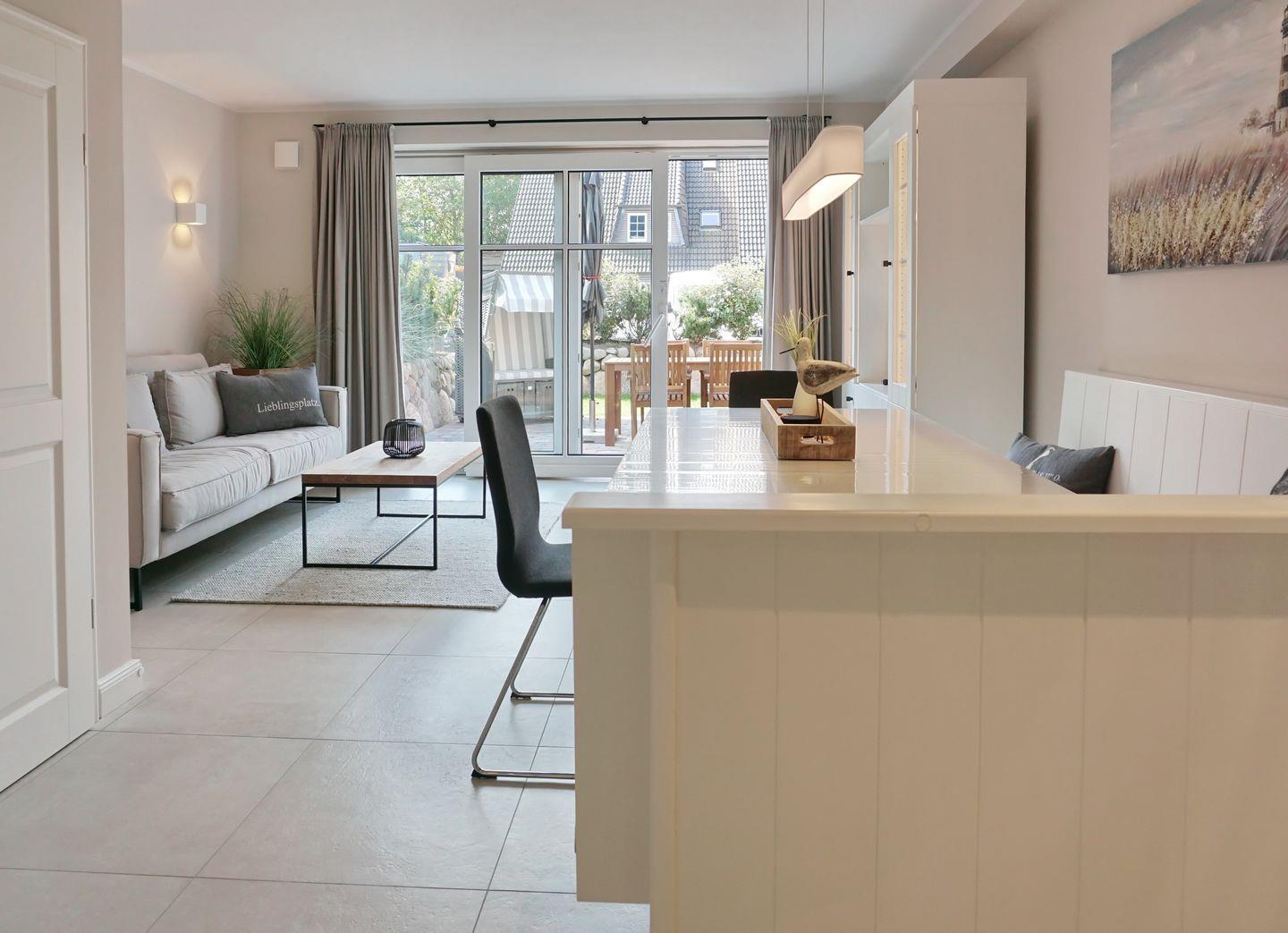Modernes Hausteil in ruhiger Lage auf Sylt mit Terrasse und offener Küche für bis zu 4 Personen.