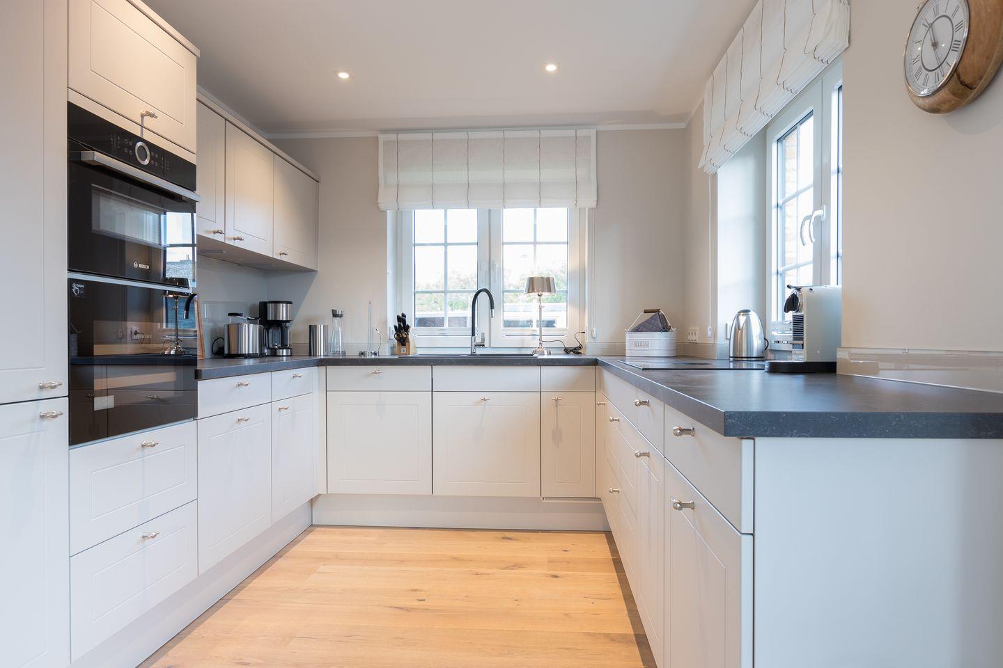 hat man direkten Blick zur offenen, stilvollen Wohnküche, die neben allen üblichen Küchengeräten auch einen gekühlten Weinschrank enthält.