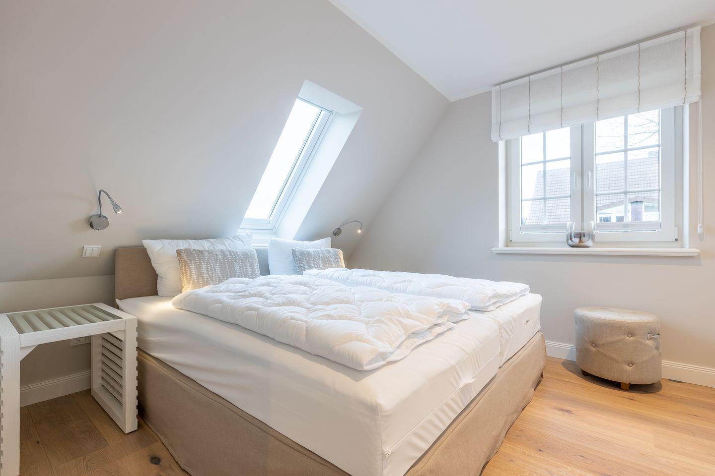 Weiterhin befindet sich im Obergeschoss noch ein zweites, geschmackvoll eingerichtetes Bad. Im geräumigen Dachgeschoss sind noch einmal zwei getrennte Betten