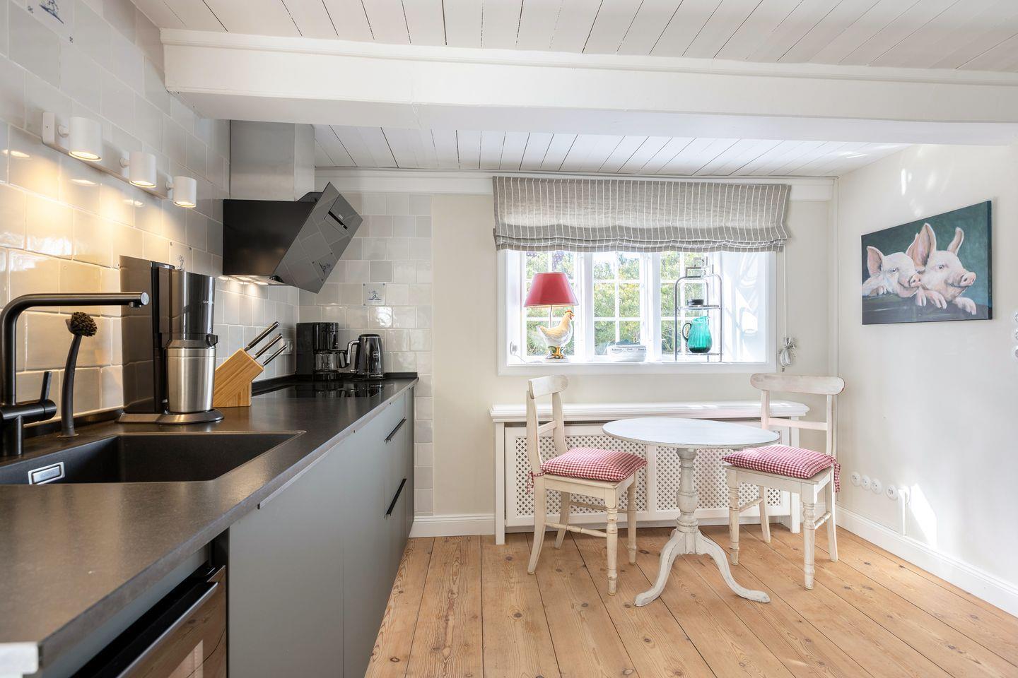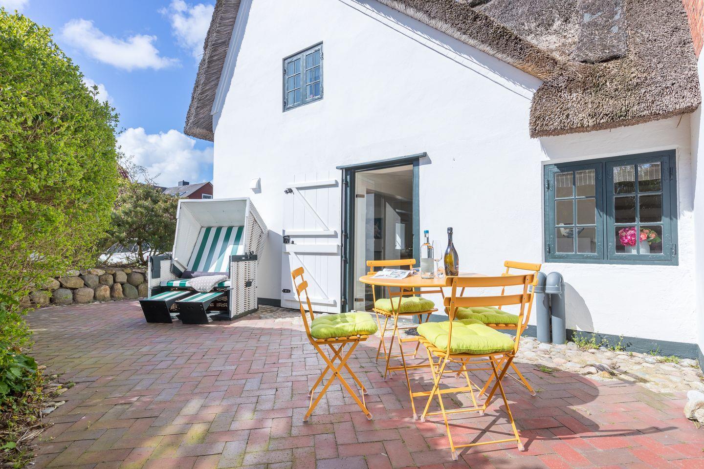 Charmantes historisches Reetdach-Hausteil auf Sylt mit Terrasse und modernem Komfort für erholsame Tage.