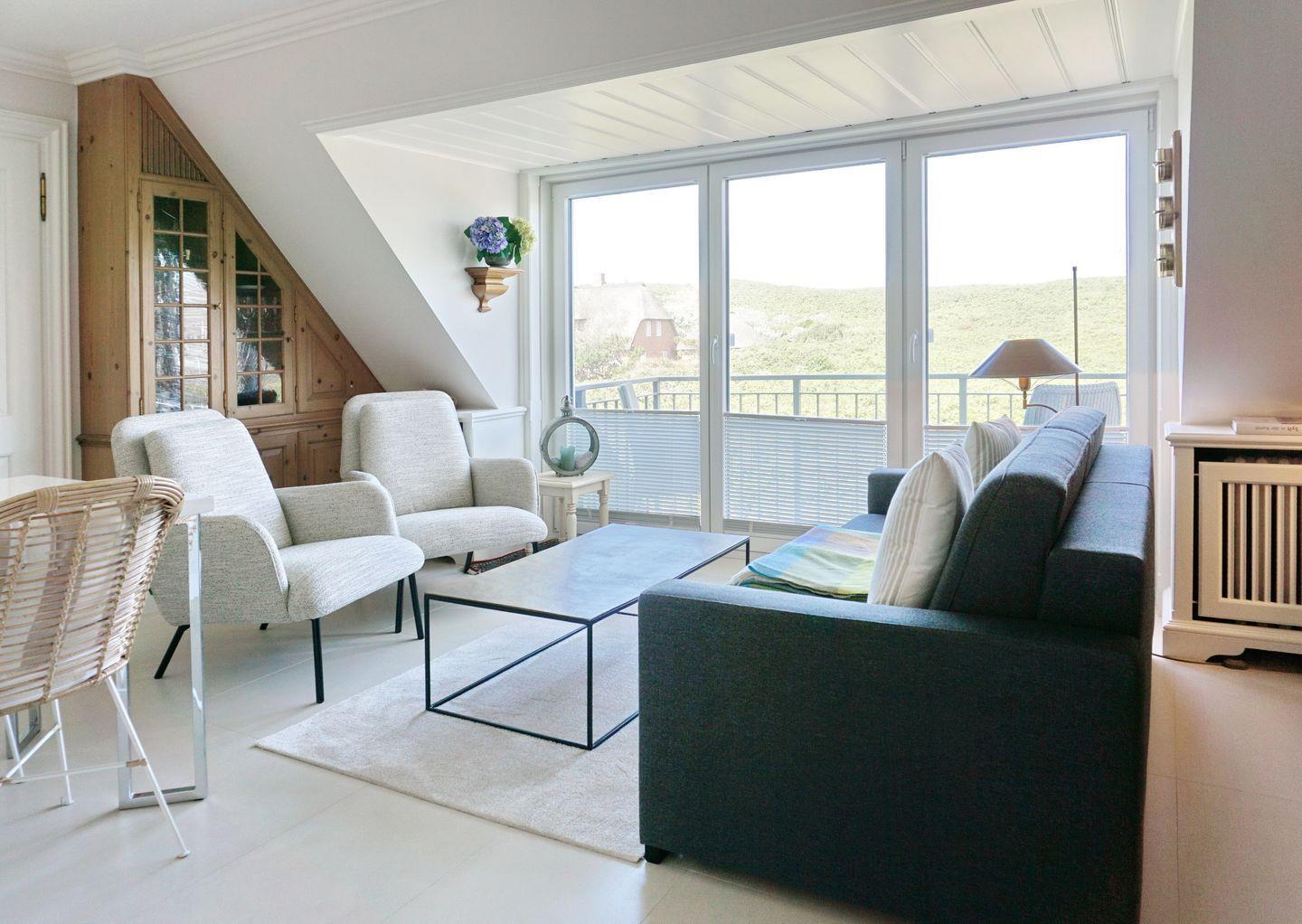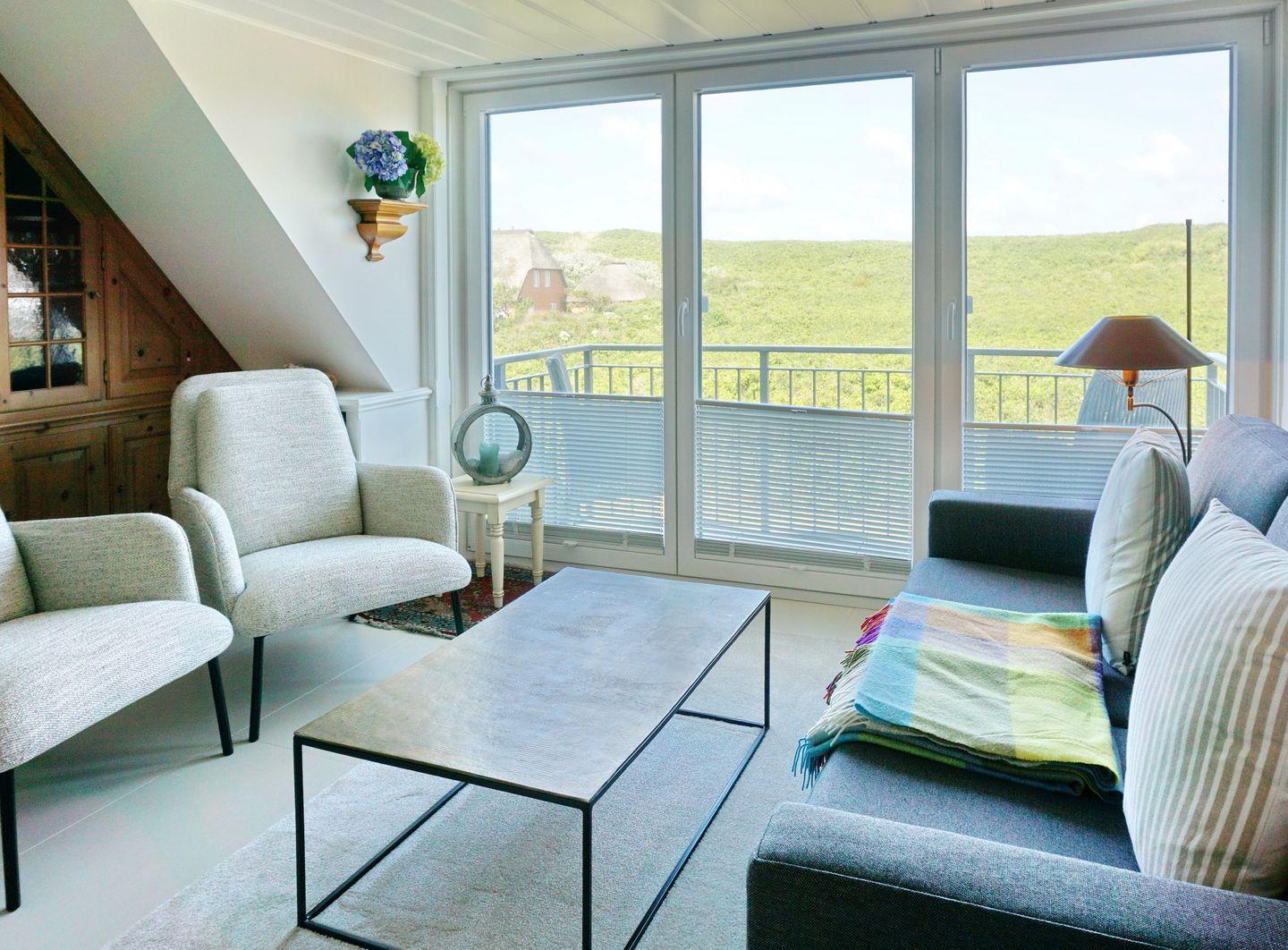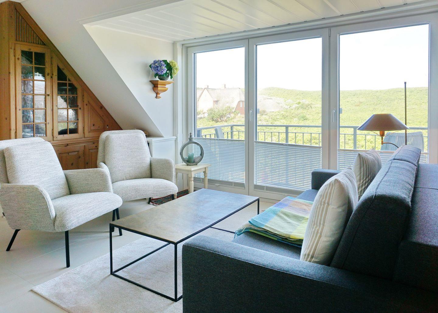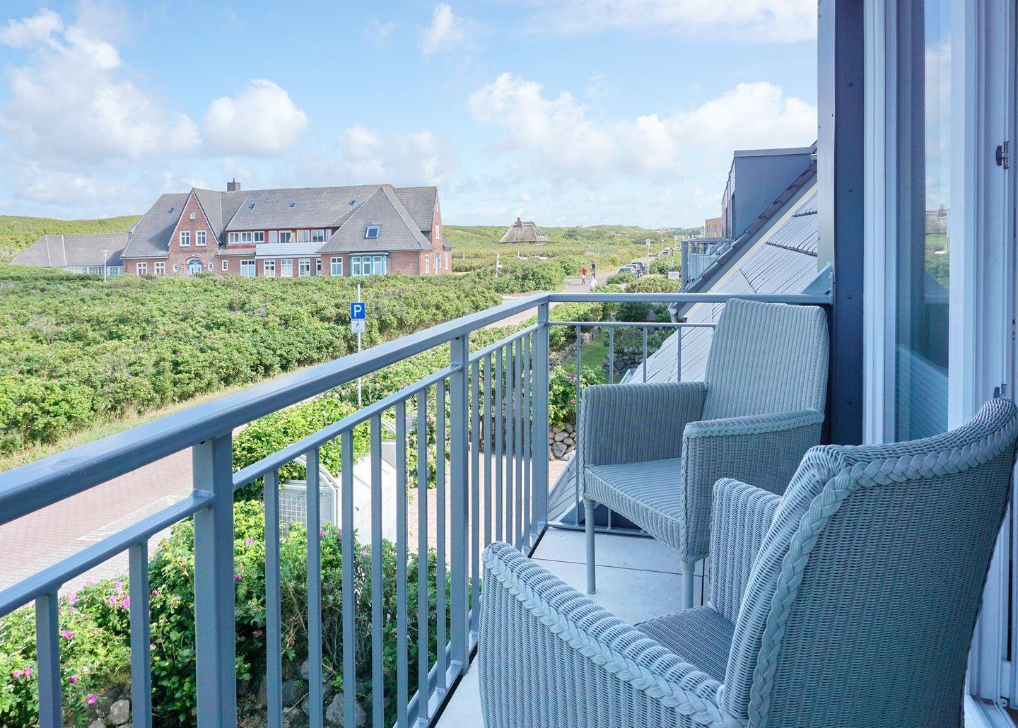 Modernes Apartment auf Sylt mit Balkon und direktem Strandzugang, ideal für erholsame Tage am Meer.