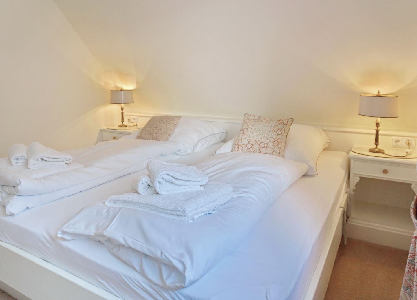 Das Schlafzimmer hat ein Doppelbett mit 2 großen (2,0 x 1,0m) Taschenfederkernmatrazen, elektrisch verstellbaren Lattenrosten und 2 Schränke.