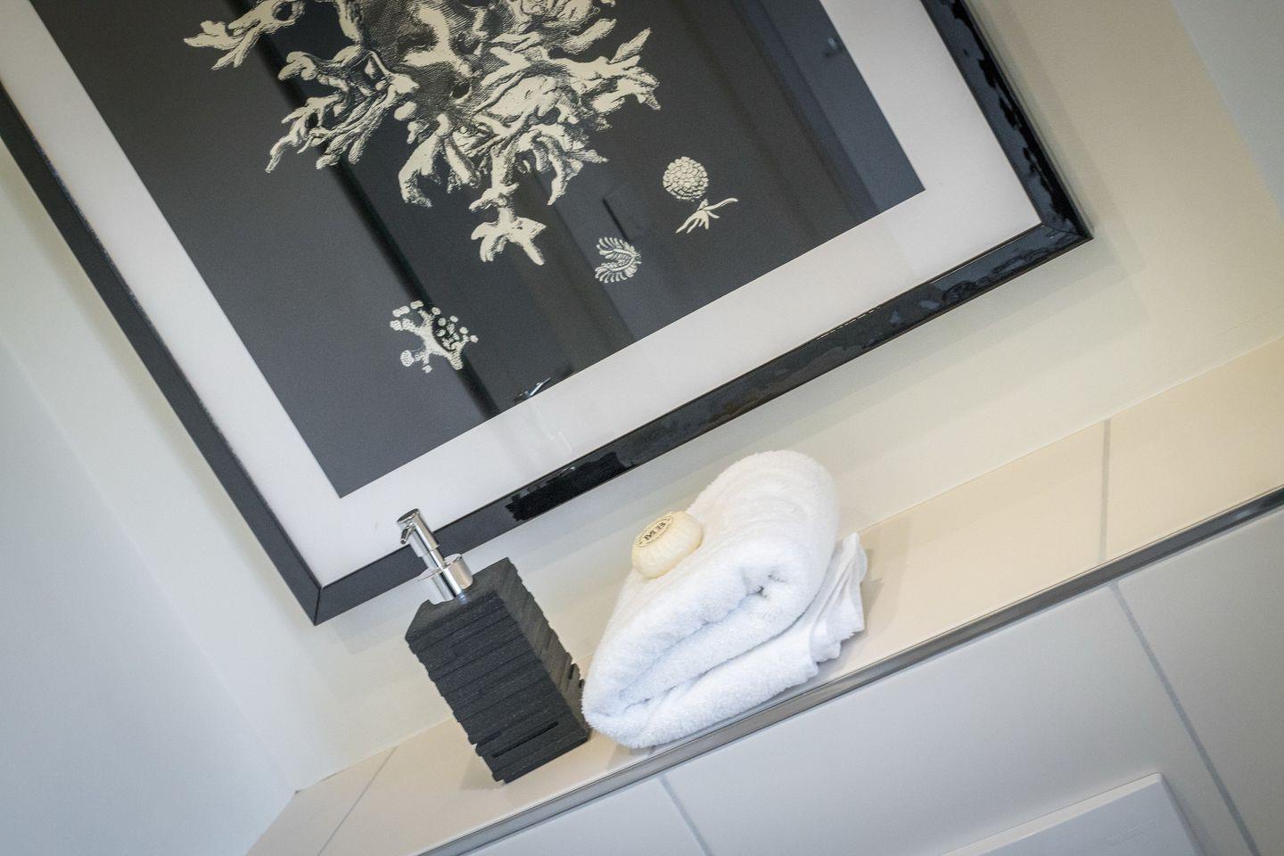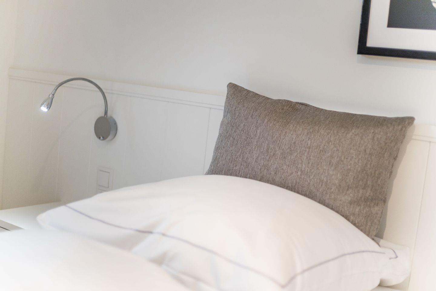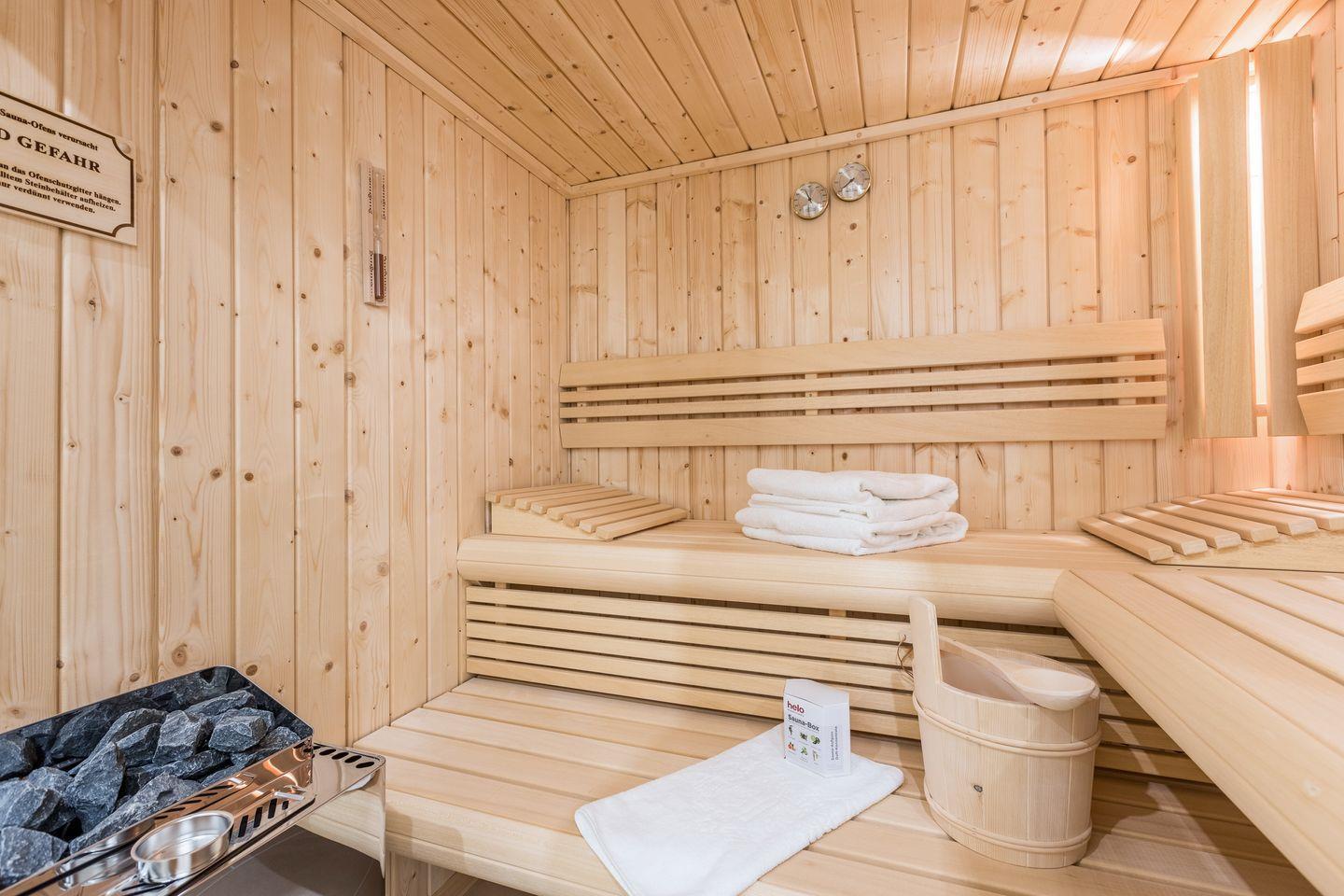 Im Untergeschoss des Hauses erwartet Sie ein Zimmer mit Boxspringbett und Flatscreen-TV sowie Ihre persönliche Wohlfühloase mit einer privaten Sauna und einem großen Duschbad mit WC. Im Obergeschoss des Hauses finden Sie zwei Schlafräume mit je einem Boxspringbett und Flatscreen-TV. Diese Etage verfügt außerdem ebenfalls über ein Badezimmer mit Dusche und WC.