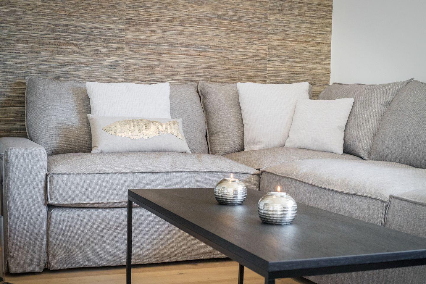 Der große Wohn- und Essbereich bietet Ihnen eine top-ausgestattete Küche, eine gemütliche Essecke und eine Sofalandschaft mit Blick auf den Kamin. Von hier aus treten Sie hinaus auf die möblierte Terrasse und den angeschlossenen Garten, in dem Kinder ungestört spielen können. Im Erdgeschoss finden Sie außerdem ein Gäste-WC.