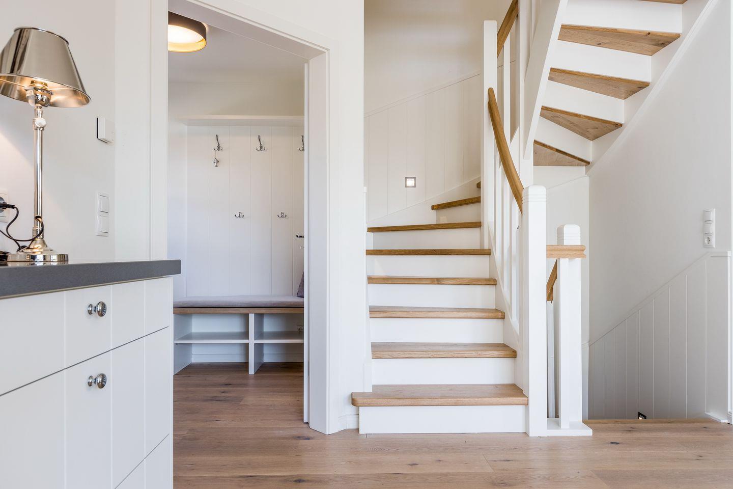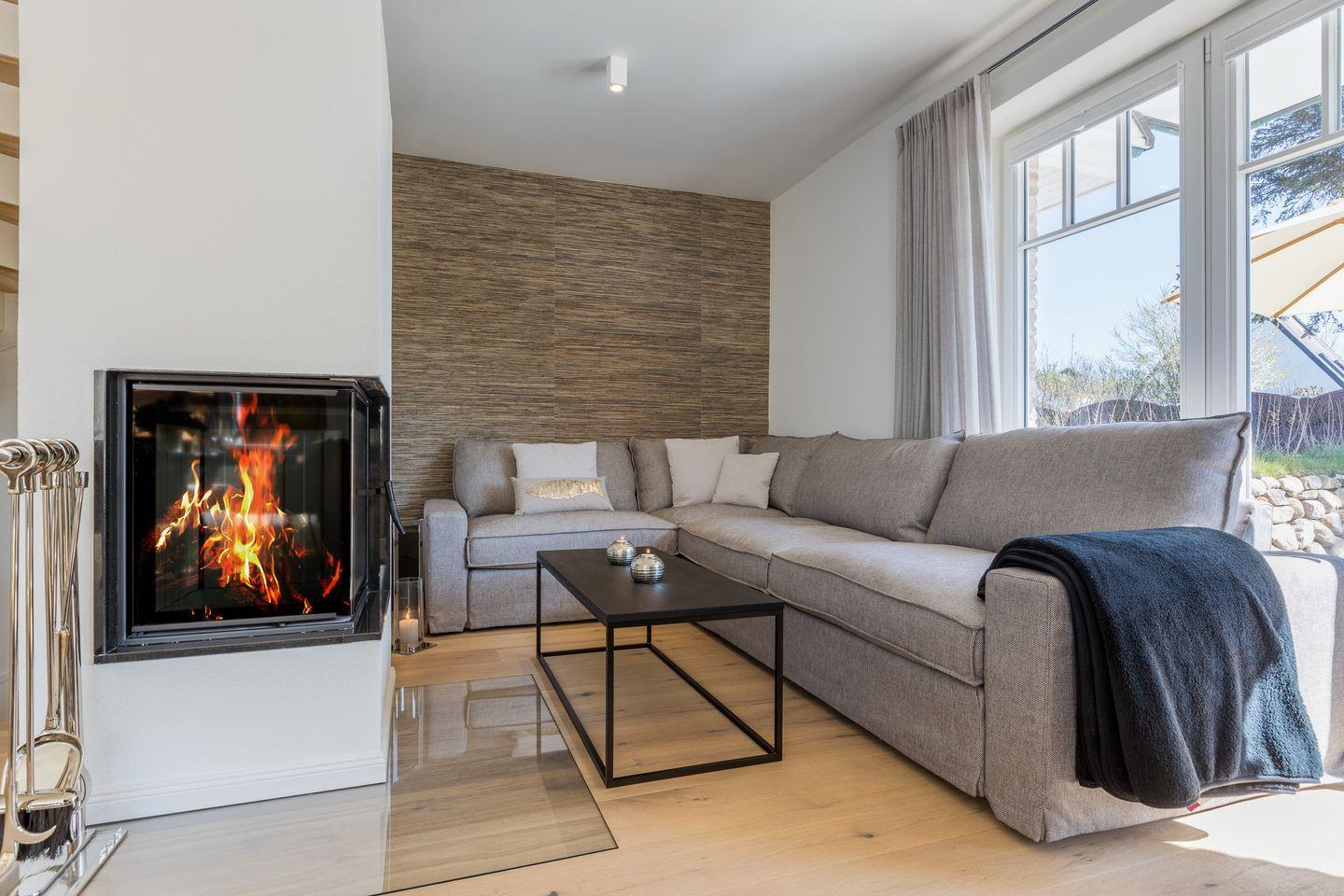 EG: Wohnbereich mit Kamin, 65" UHD-TV, BluRay-Player, Playstation 4, W-Lan, Essbereich mit Eckbank, offene Küche mit Geschirrspüler, Induktionsherd, Backofen, Nespressomaschine, Filter-Kaffeemaschine, Gäste-WC, Garten und Terrasse mit Gartenmöbeln und Strandkorb (ca. April-Oktober)