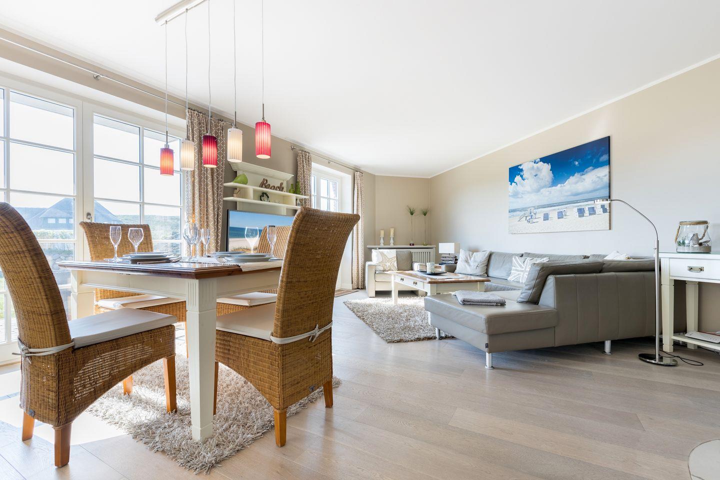 Moderne Ferienwohnung auf Sylt mit Strandzugang nur 100 m entfernt, Terrasse und hochwertiger Ausstattung für erholsamen Urlaub.