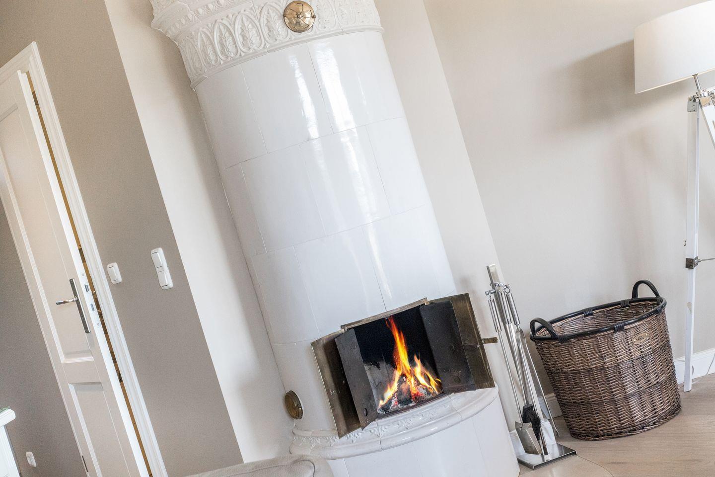 EG: Wohnraum mit Phillips TV 3D, Kachelofen, Radio, Blu-Ray Player, CD-Player, iPod Docking Station, Telefon und W-LAN, offene Küche mit Mikrowelle, Backofen, Spülmaschine, Filterkaffeemaschine und Nespressomaschine