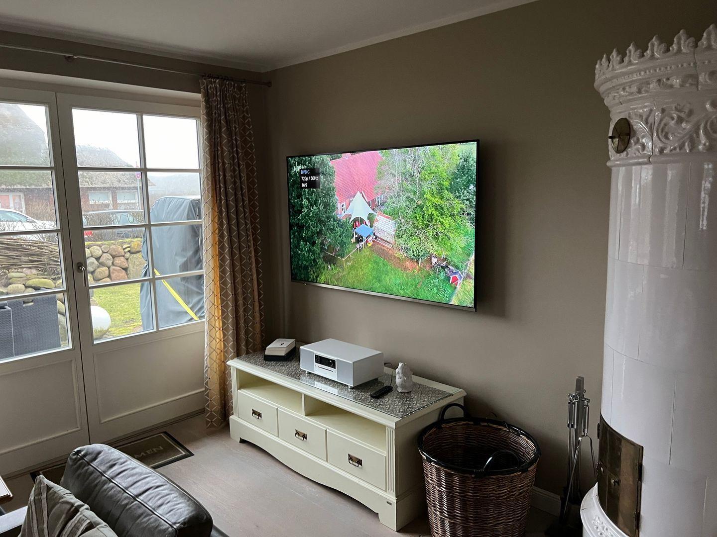 EG: Wohnraum mit Phillips TV 3D, Kachelofen, Radio, CD-Player, iPod Docking Station, Telefon und W-LAN, offene Küche mit Mikrowelle, Backofen, Spülmaschine, Filterkaffeemaschine und Nespressomaschine