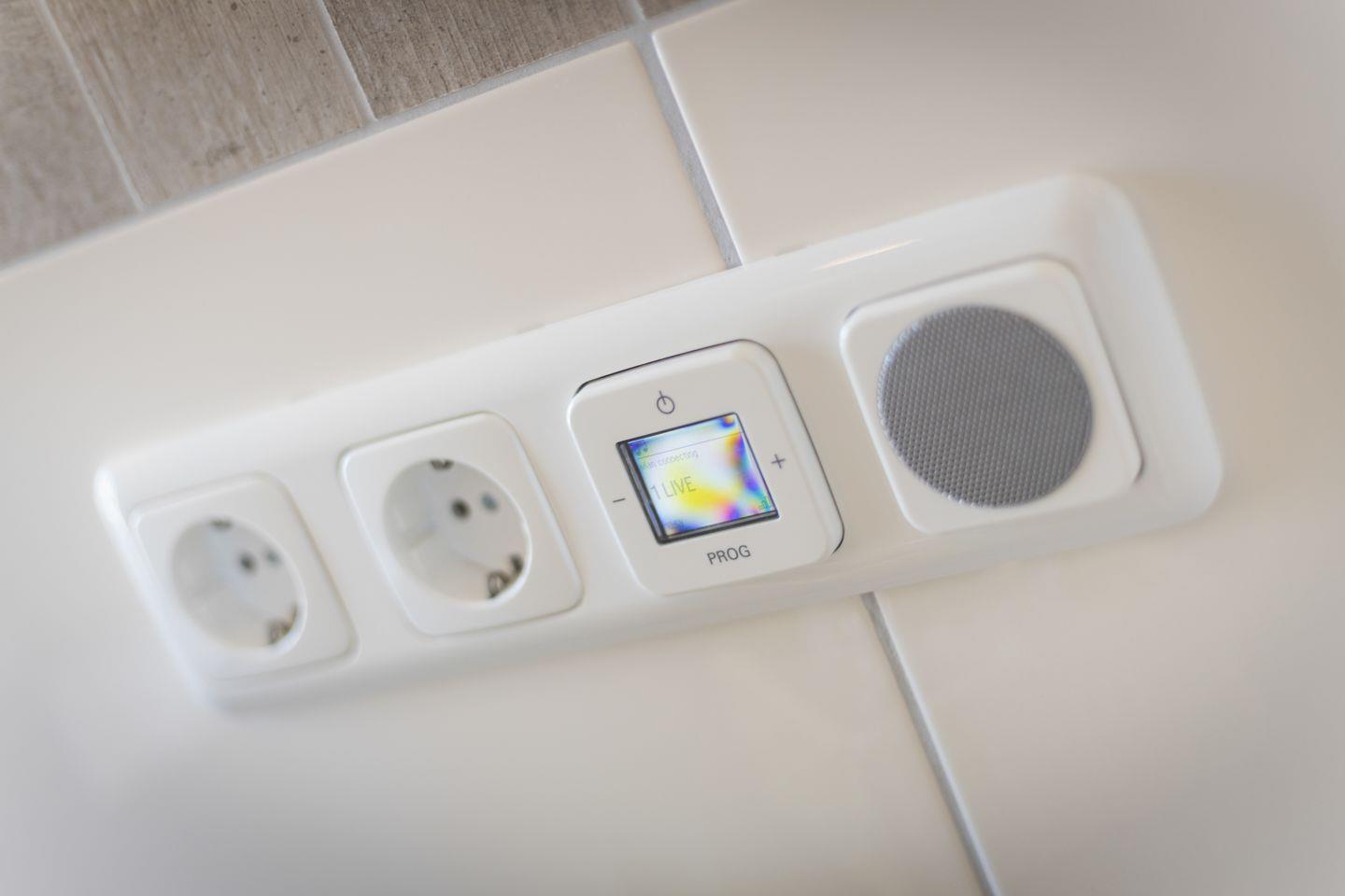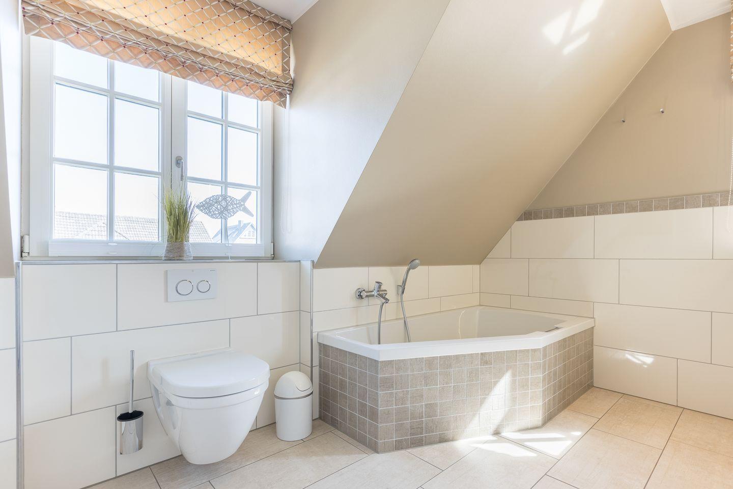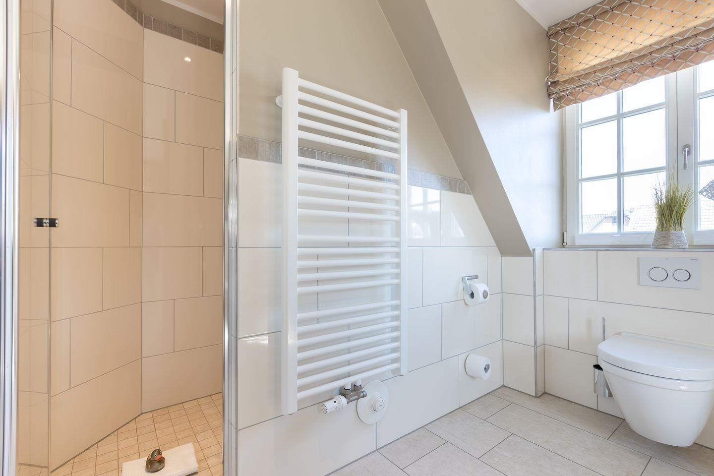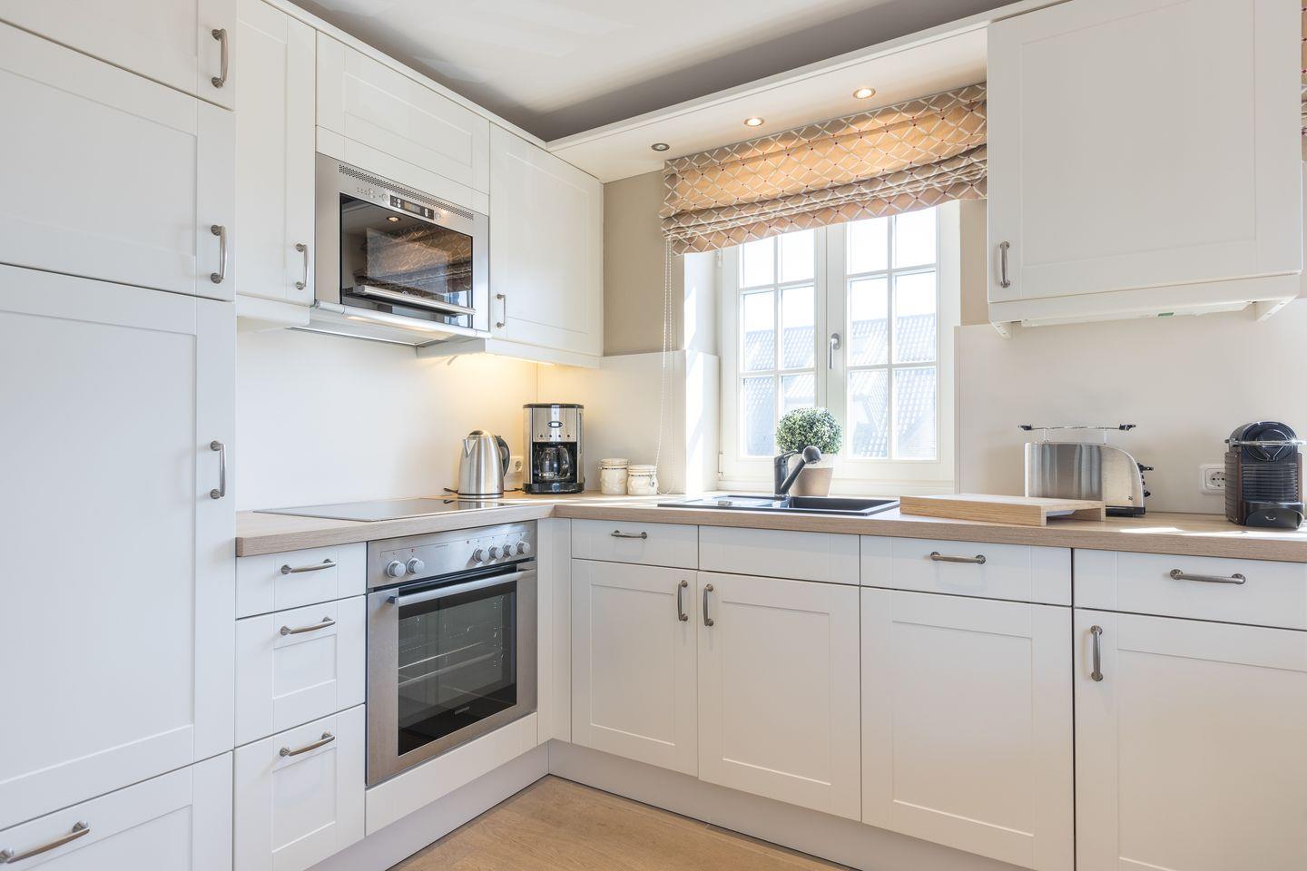 Im Obergeschoss der Wohnung Hooge befindet sich der Wohnraum mit Couchbereich, 3D Flatscreen-TV und Essbereich. Von hier aus gelangen Sie auf Ihren Balkon, der von April bis Oktober mit Gartenmöbeln möbliert ist. Die Küchenzeile ist mit Backofen, Mikrowelle, Spülmaschine und Nespresso-Kaffeemaschine top ausgestattet, sodass es Ihnen an nichts fehlen wird. Auf der gleichen Etage befindet sich ein Tageslichtbad mit Badewanne, Dusche und WC.