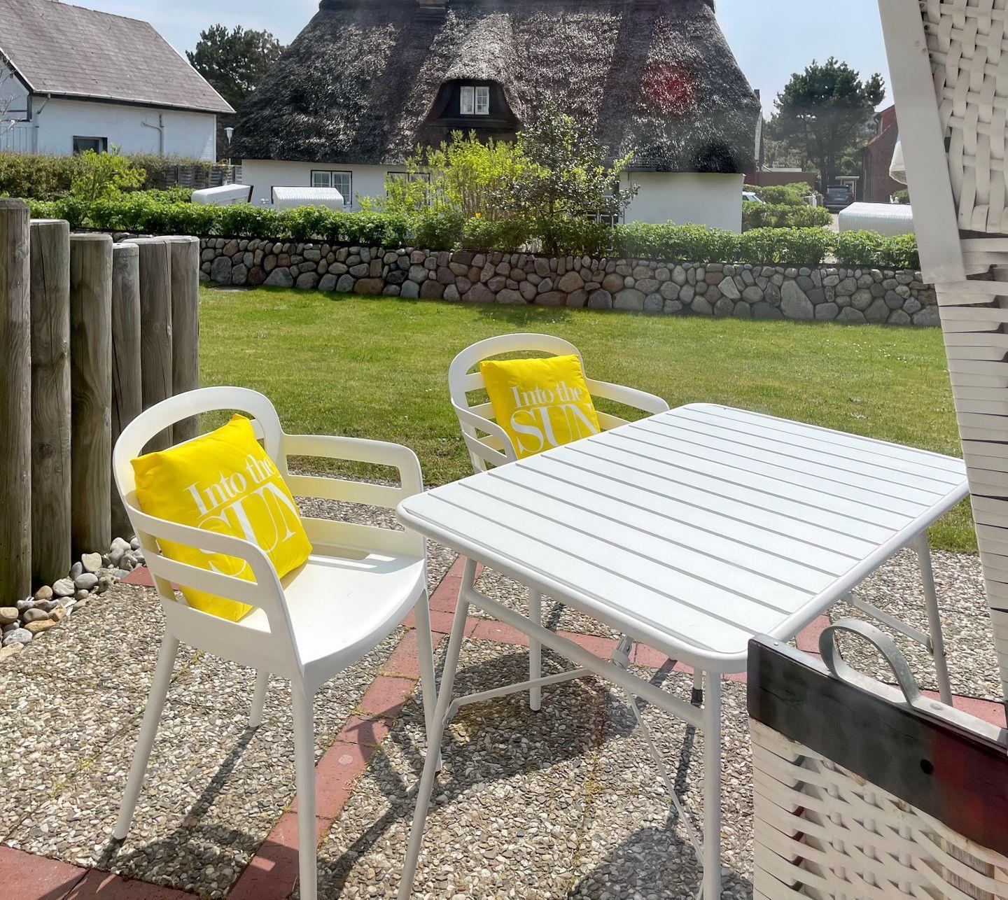 Gemütliche Ferienwohnung mit Terrasse und Garten in Westerland auf Sylt, ideal für erholsame Tage zu zweit.