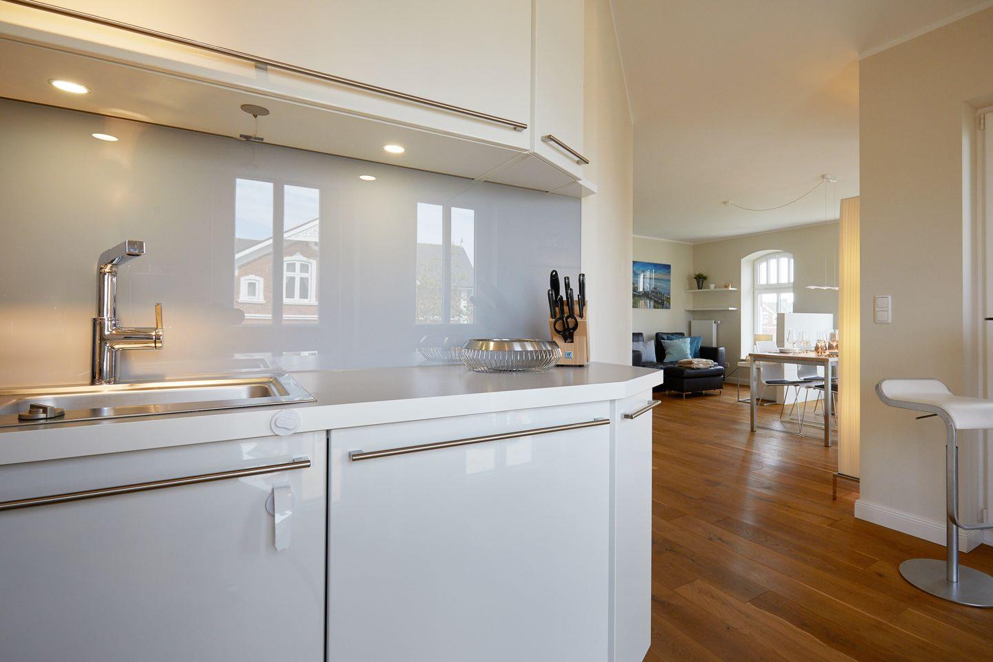 Ihre in den Raum integrierte, aber optisch getrennte Luxusküche mit Induktionsherd bietet Ihnen sämtliche Annehmlichkeiten, die Sie auch zum ambitionierteren Kochen schätzen werden. Bistrotisch mit zwei Hockern zum Genießen eines ersten Espressos am Morgen oder eines abendlichen Küchen-Weines. Auch vom Küchenfenster aus genießen Sie einen Blick auf die Dünen !