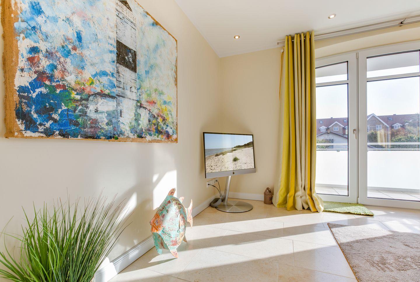 Freuen Sie sich auf den sehr schön gestalteten, großzügigen und lichtdurchfluteten Wohnraum. Hier erwarten Sie feines Mobiliar ("Bielefelder Werkstätten"), hochwertige Kunst an den Wänden sowie zauberhafte Ausstattungsdekorationen. Die gesamte Wohn- und Wohlfühlatmosphäre zeugt von erlesenem Geschmack und Gespür für Feines.