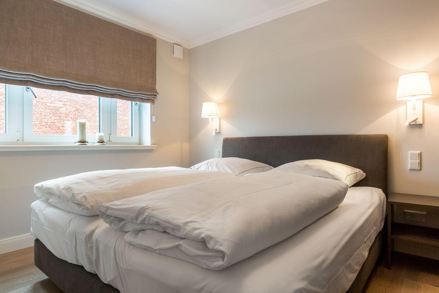 Ausstattung: 2-Raum Domizil im Obergeschoss mit ca. 47qm² Nutzfläche, ein Wohnraum mit Flatscreen-TV, Schlafcouch und integrierter Küche mit Cerankochfeld, Mikrowelle und Geschirrspüler, 1 Schlafraum mit Doppelbett (180x200cm-Matratzen getrennt) und ein Bad mit Dusche/WC