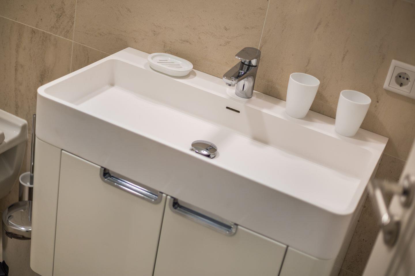 Die Wohnung ist top-modern eingerichtet und bietet Ihnen einen hellen Wohnraum mit Schlafcouch und offener Küche, die voll ausgestattet ist. Vom Wohnzimmer aus gelangen Sie auf einen kleinen Balkon, auf dem laue Sommerabende mit einem leckeren Getränk genossen werden können. Das Appartement verfügt außerdem über ein Schlafzimmer mit Doppelbett und ein modernes Badezimmer mit Dusche und WC.