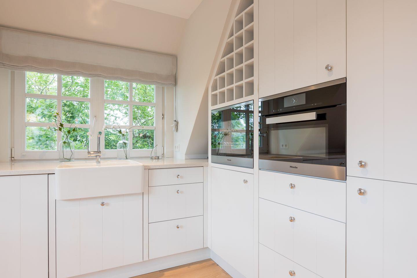 Wohnbereich mit Flatscreen-TV und Sonos-Anlage; offener Ess- und Küchenbereich mit Mikrowellen-Backofen-Kombination, Induktionsherd, Geschirrspülmaschine, Weinkühlschrank, Nespresso-Maschine und Eiswürfelbereiter; Duschbad