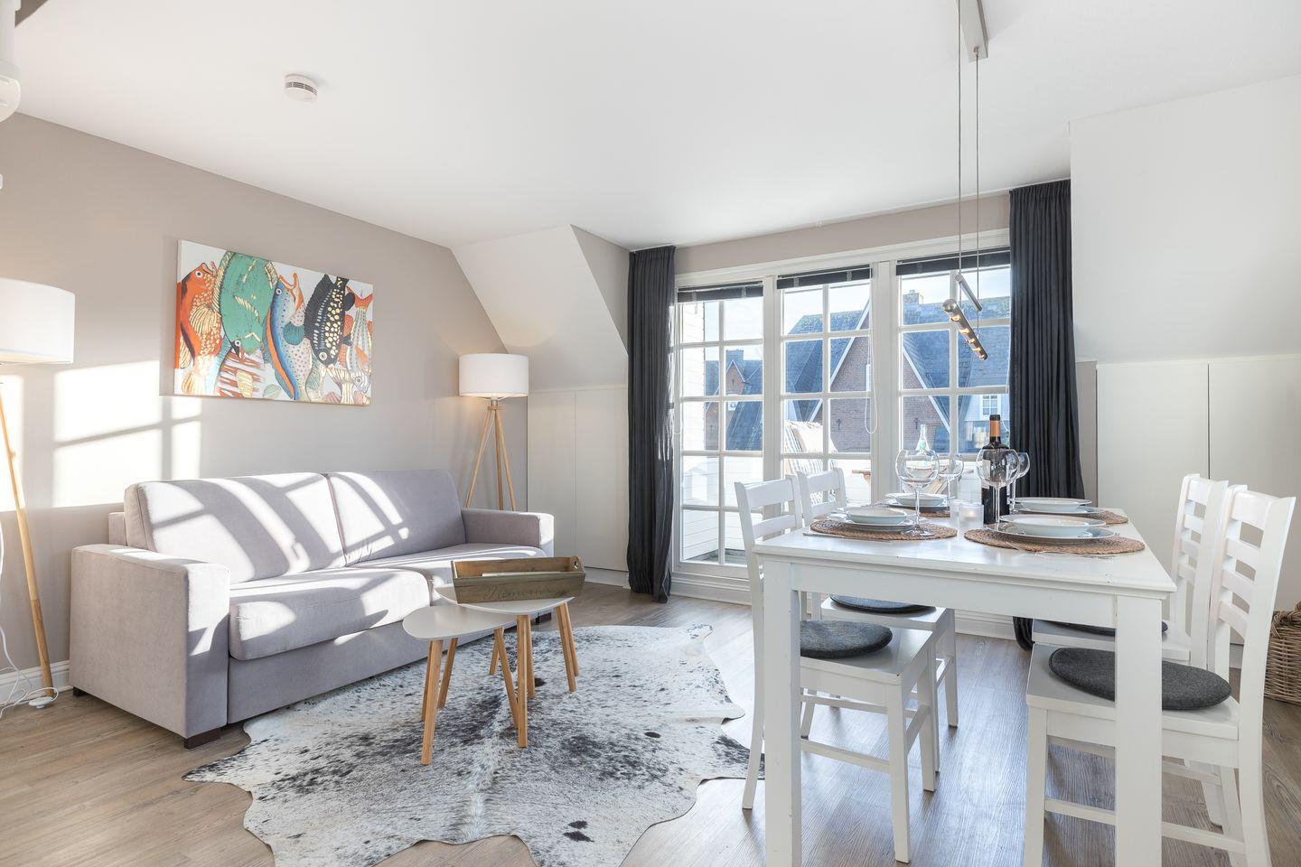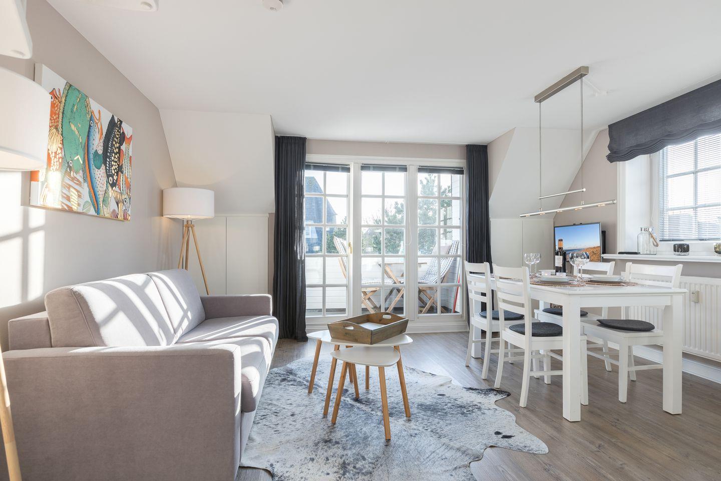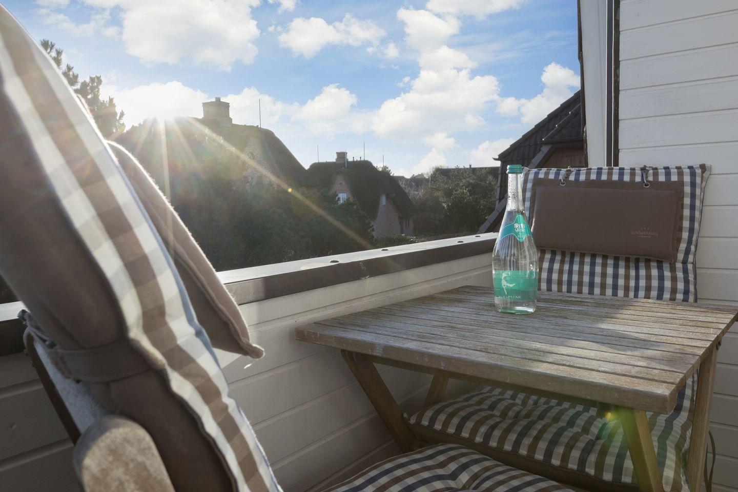 Charmantes 3-Raum-Appartement "Windlicht" in Sylt, nur 80 m vom Wattenmeer mit Balkon und Gartenplatz.