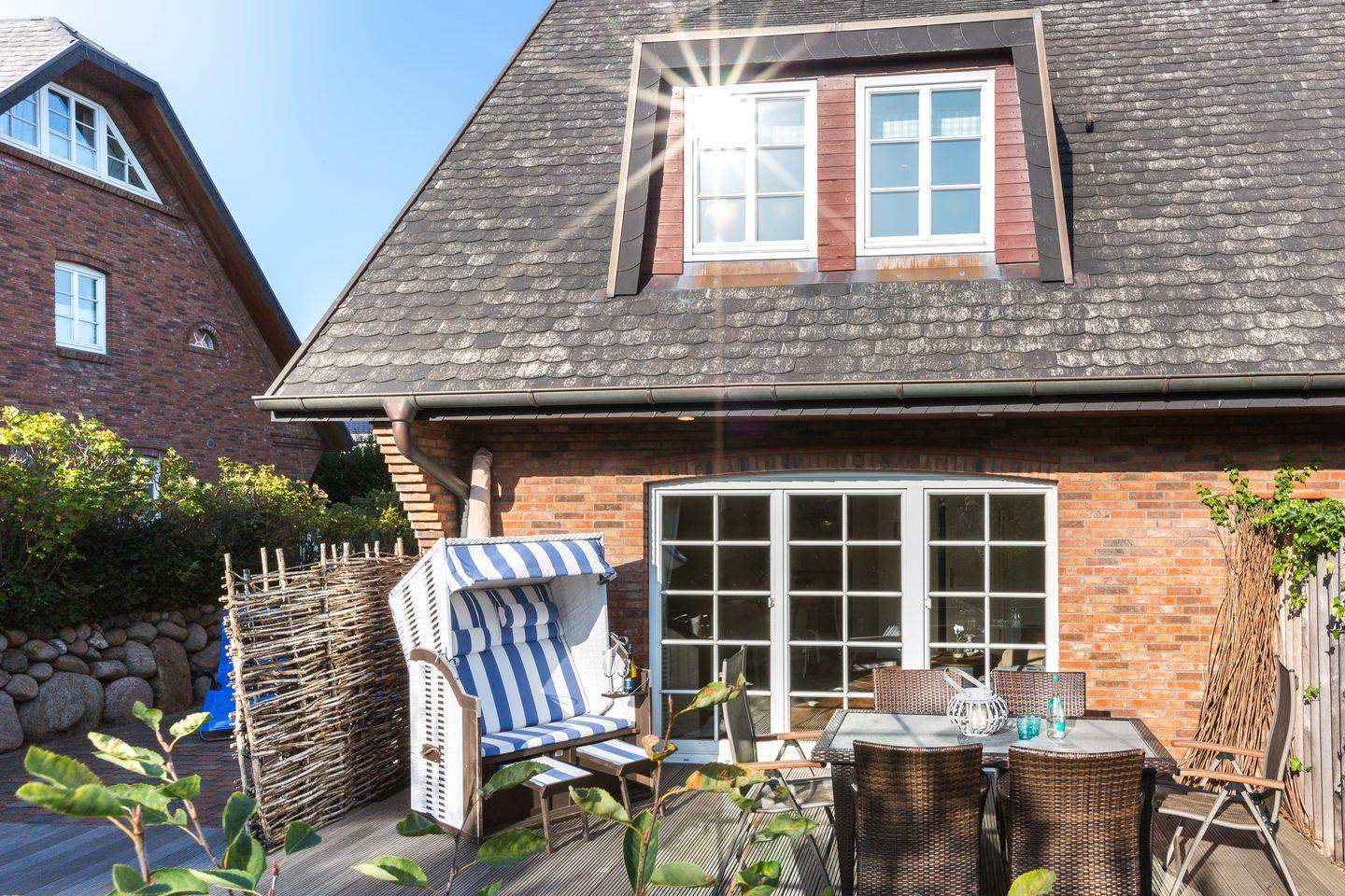 Gemütliches Ferienhaus 'Heide Hüs' auf Sylt, 350 m vom Strand, mit Terrasse und Gartenmöbeln für erholsame Urlaubstage.