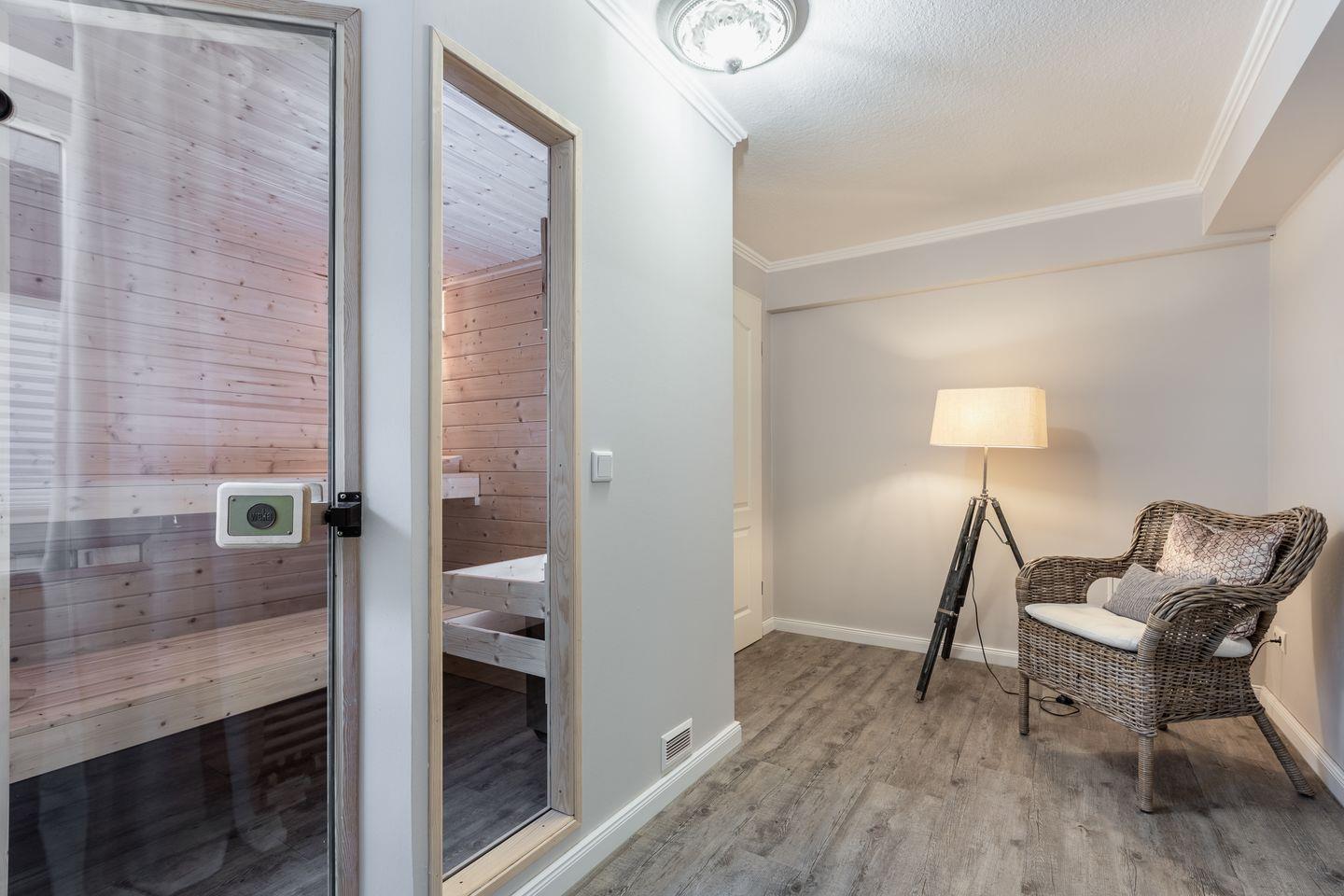 Passend dazu gibt es vier neue luxuriöse Bäder von denen eines sogar über eine Badewanne verfügt. Für den Fall, dass Ihnen der Sinn nach einem Wellness-Tag steht, wartet im Untergeschoss eine große Sauna mit Ruheraum auf Sie.
