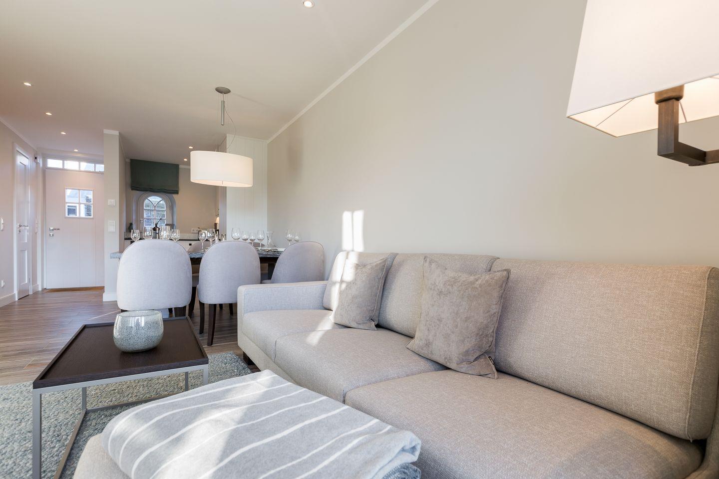 Und Ihr Hausteil selbst ? Hier steht alles nicht minder bestens: versierte Interieur Designer schufen nicht nur einen Ort des guten Geschmacks, sondern gestalteten jeden noch so kleinen Winkel zu Ihrem Urlaubshighlight. Zeitgenössische Einbaumöbel prägen das besondere Raumgefühl. Freuen Sie sich außerdem auf Wellness vom Feinsten, eine wunderschöne Luxusküche, große Wellness-Bäder mit Naturstein sowie zahlreiche Detaillösungen, die Ihr Strân Hüs so besonders machen.