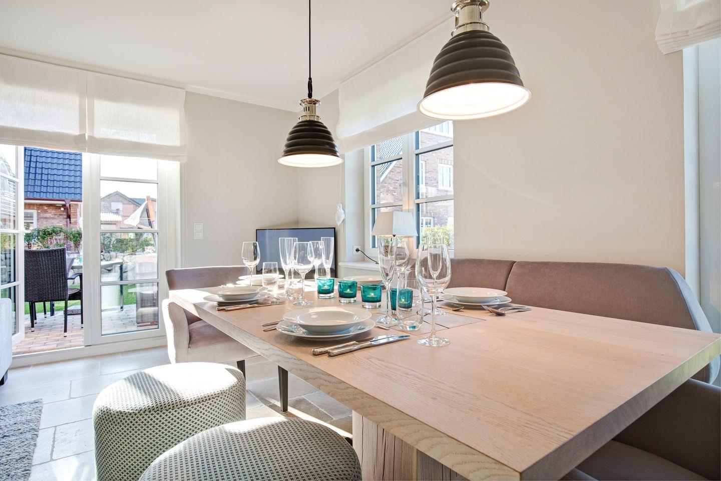 Gemütliches Ferienhaus mit Design, Sauna und Terrasse auf Sylt für entspannte Urlaubstage.