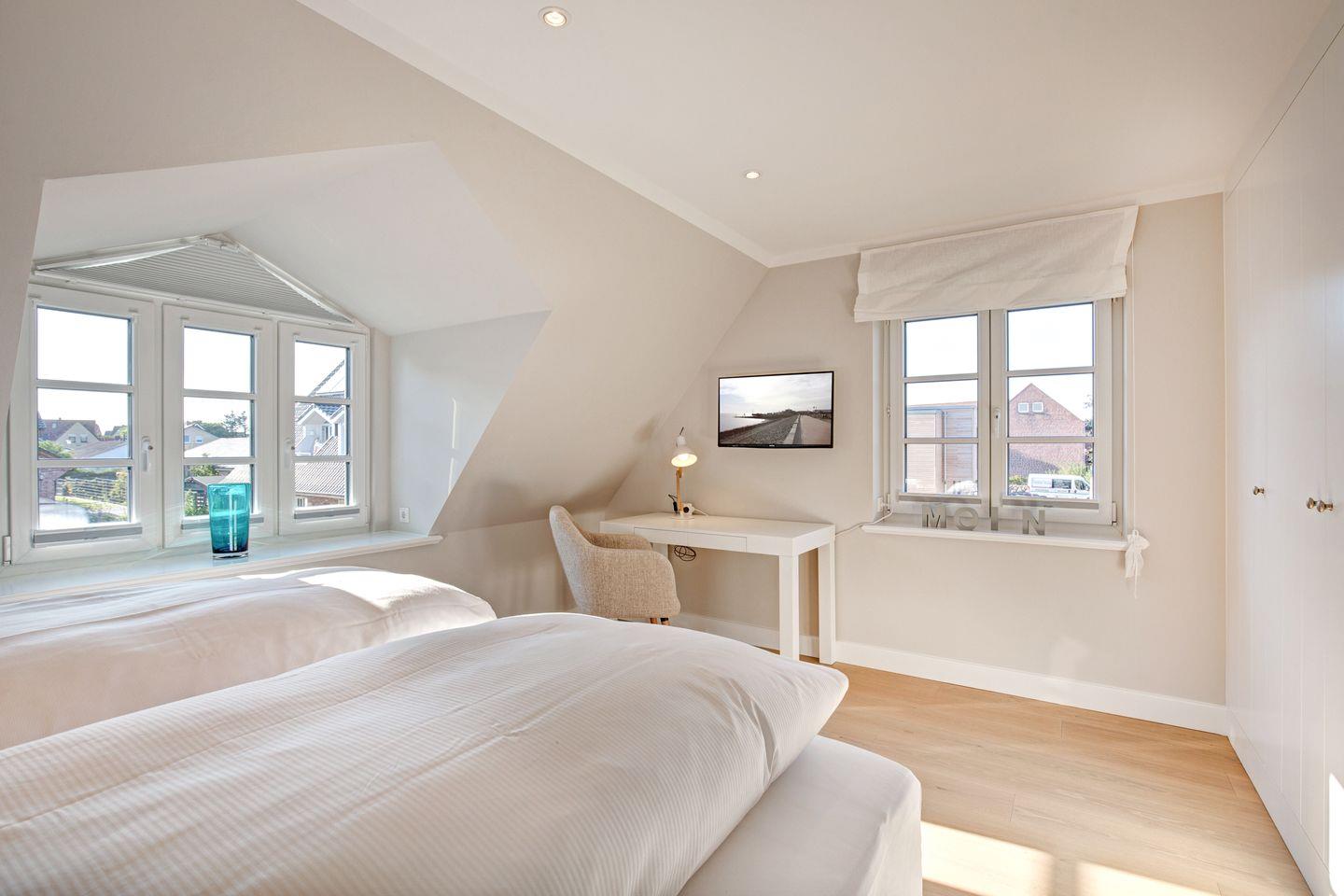 Luxuriöses, großzügiges Hausteil in zentraler, aber dennoch zurückgezogener Lage Westerlands. Ca. 100 qm Nutzfläche empfangen im Erd-, Unter-, Obergeschoss für 4 Personen.