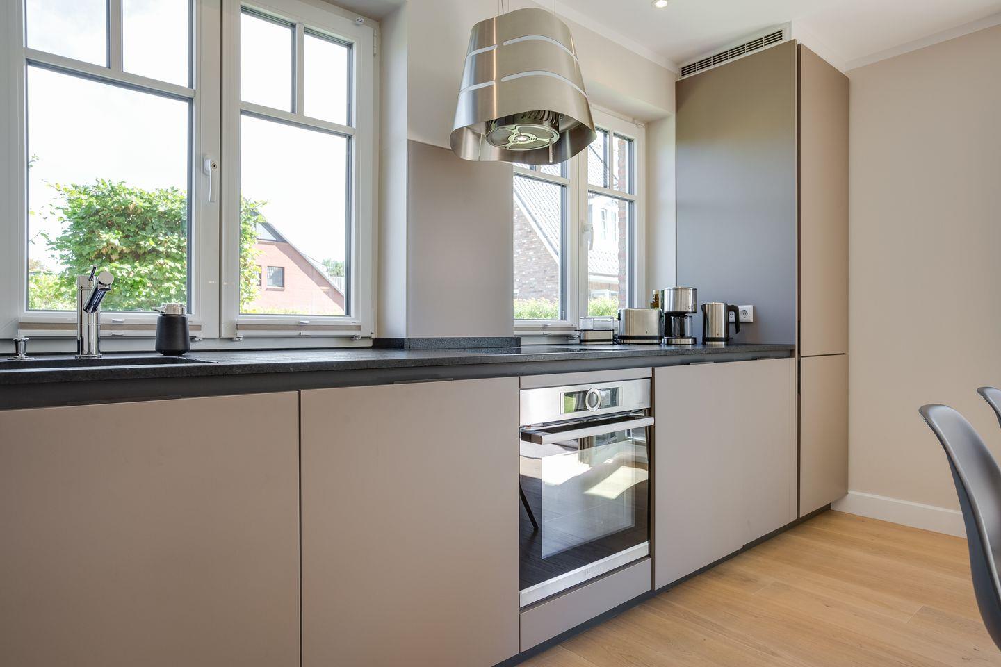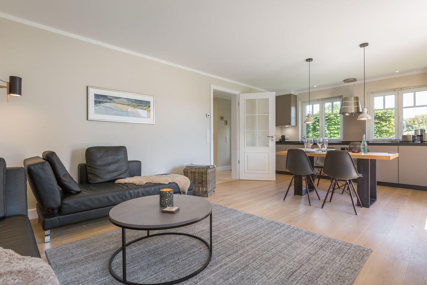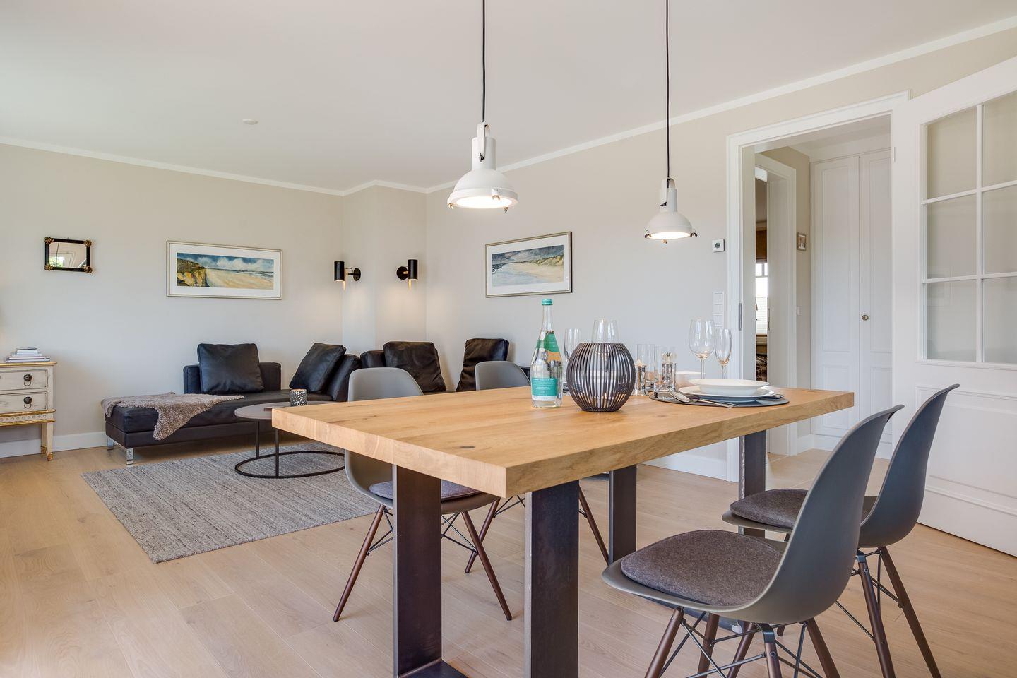 Designliebhaber und Materialästheten aufgepasst - im Sylter Quartier erwartet Sie eine geballte Ladung besten Geschmack & Niveaus. Wohin Ihr Auge auch fällt, erblicken Sie Designklassiker, wunderschöne Leuchten sowie ausgesucht hochwertige Materialien - perfekt ! Ihre eindrucksvolle Luxusküche fügt sich stimmig in den großzügigen Wohn- und Essbereich ein und viele Fenster sorgen für eine lichtdurchflutete Wohlfühlatmosphäre.