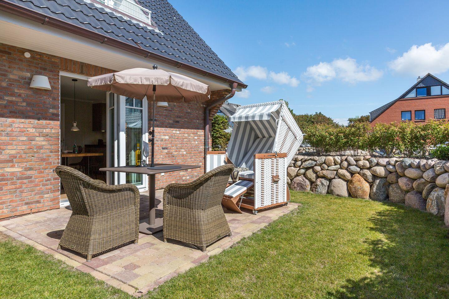Modernes 2-Raum-Appartement in zentraler, ruhiger Lage Westerlands mit Terrasse und Garten, ideal für entspannte Tage auf Sylt.