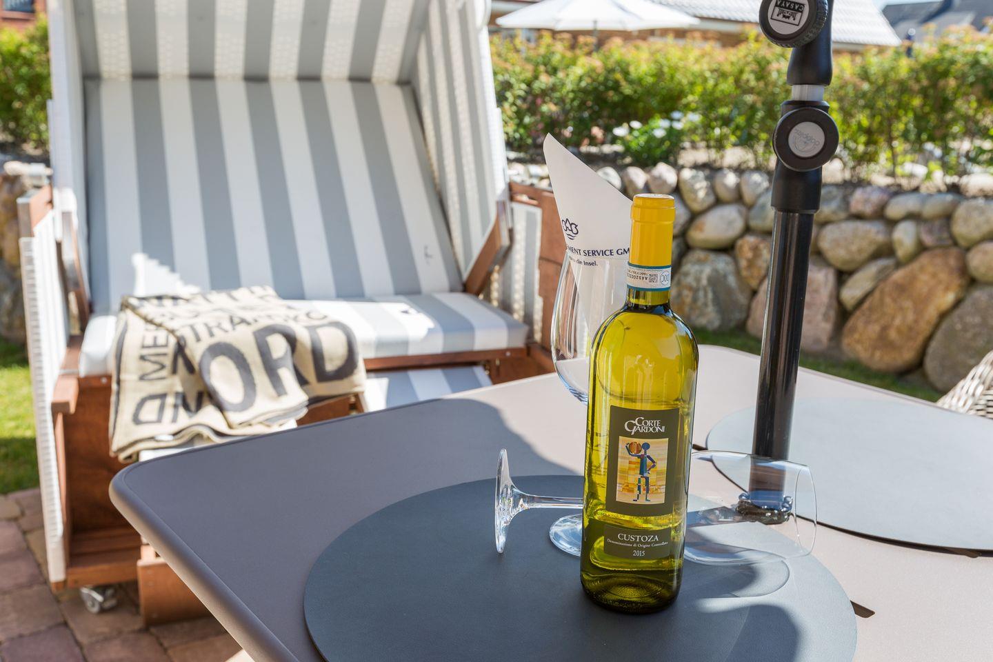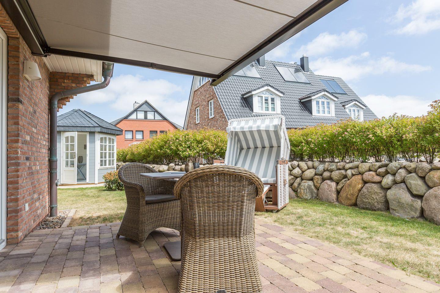 Sobald sich die Sylter Sonne zeigt, werden Sie die besonders schöne und sonnige Südterrasse mit eigenem, kleinen Garten, sicher sehr zu schätzen und genießen wissen. Sollte es Ihnen aber zu warm sein, dann können Sie die elektrische Markise ausfahren und etwas abzukühlen.
