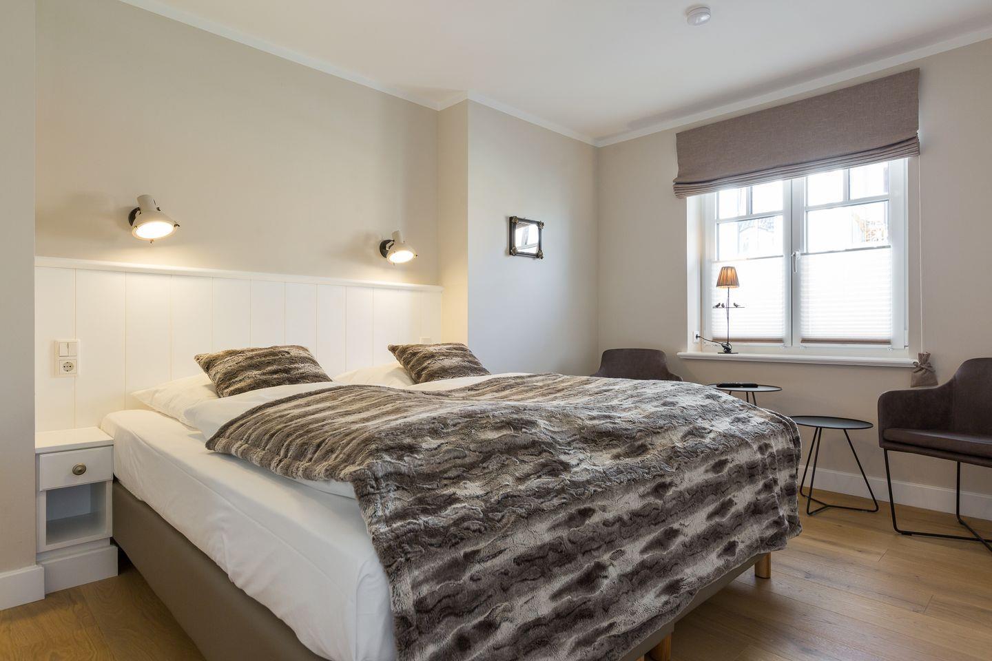 Der Schlafbereich fällt -wie das gesamte Appartement- ebenfalls großzügig aus mit einem 180x210 cm großen Doppelbett und eignet sich aufgrund der besonders schönen Gestaltung auch als "Relaxation-Point" am Tage.