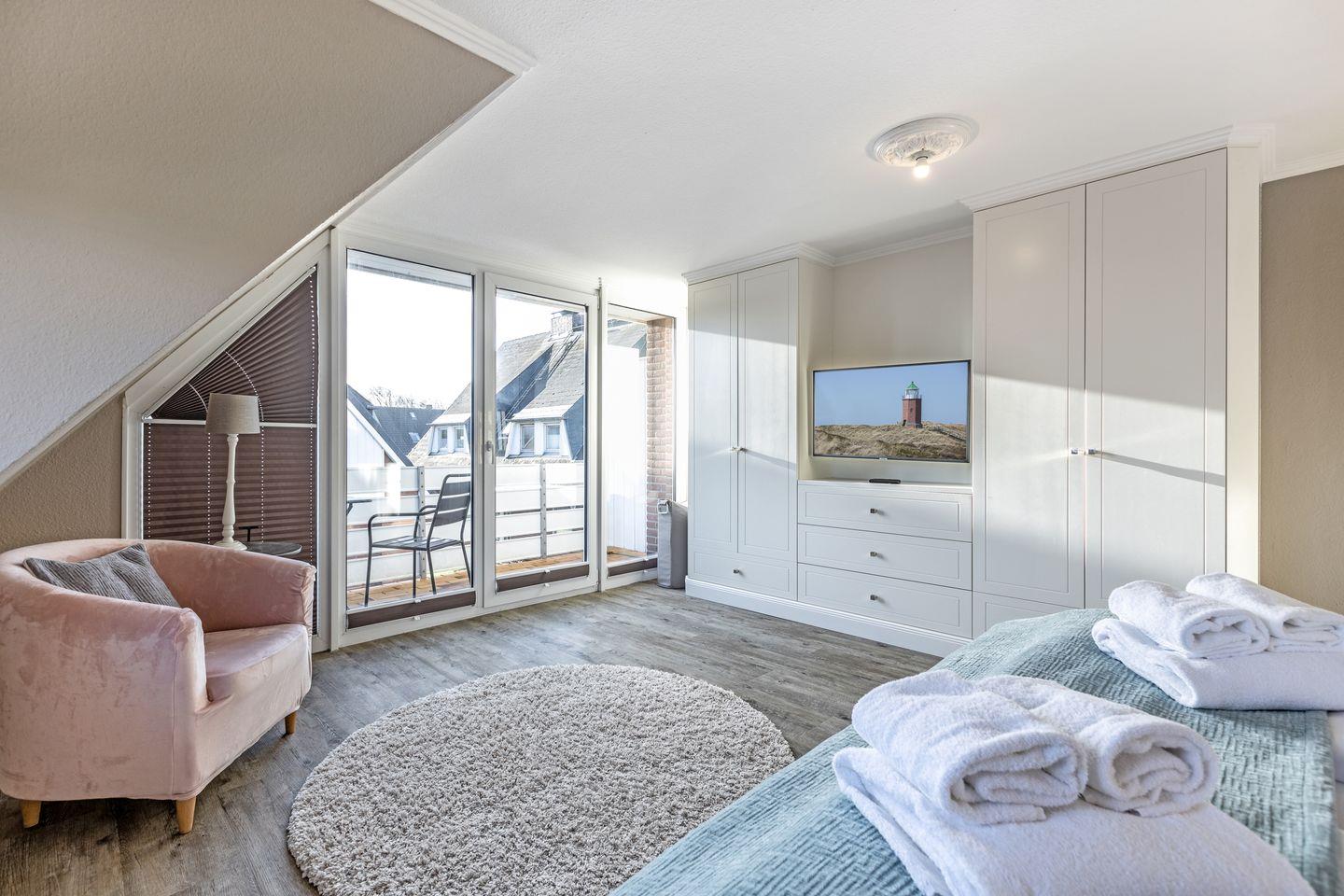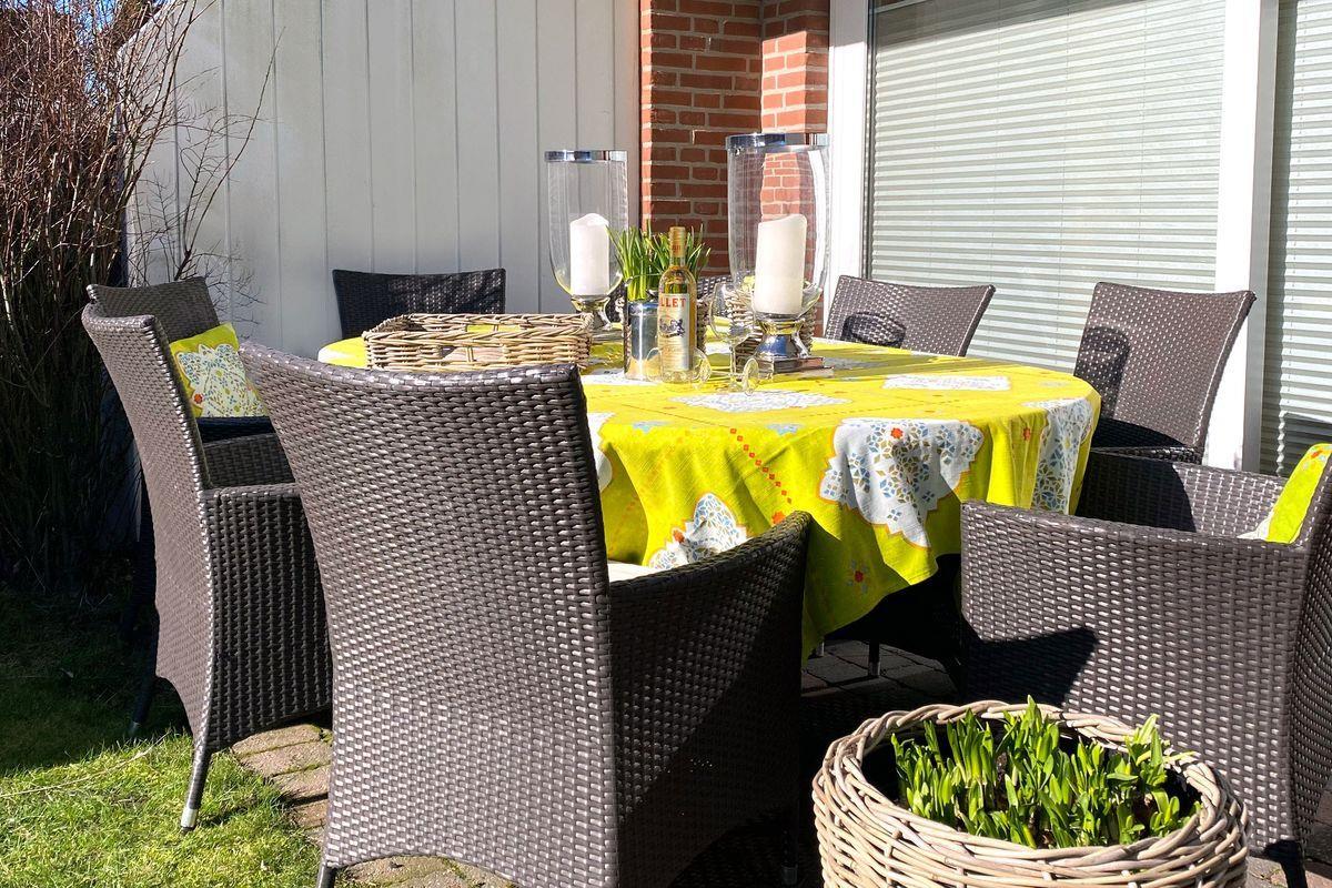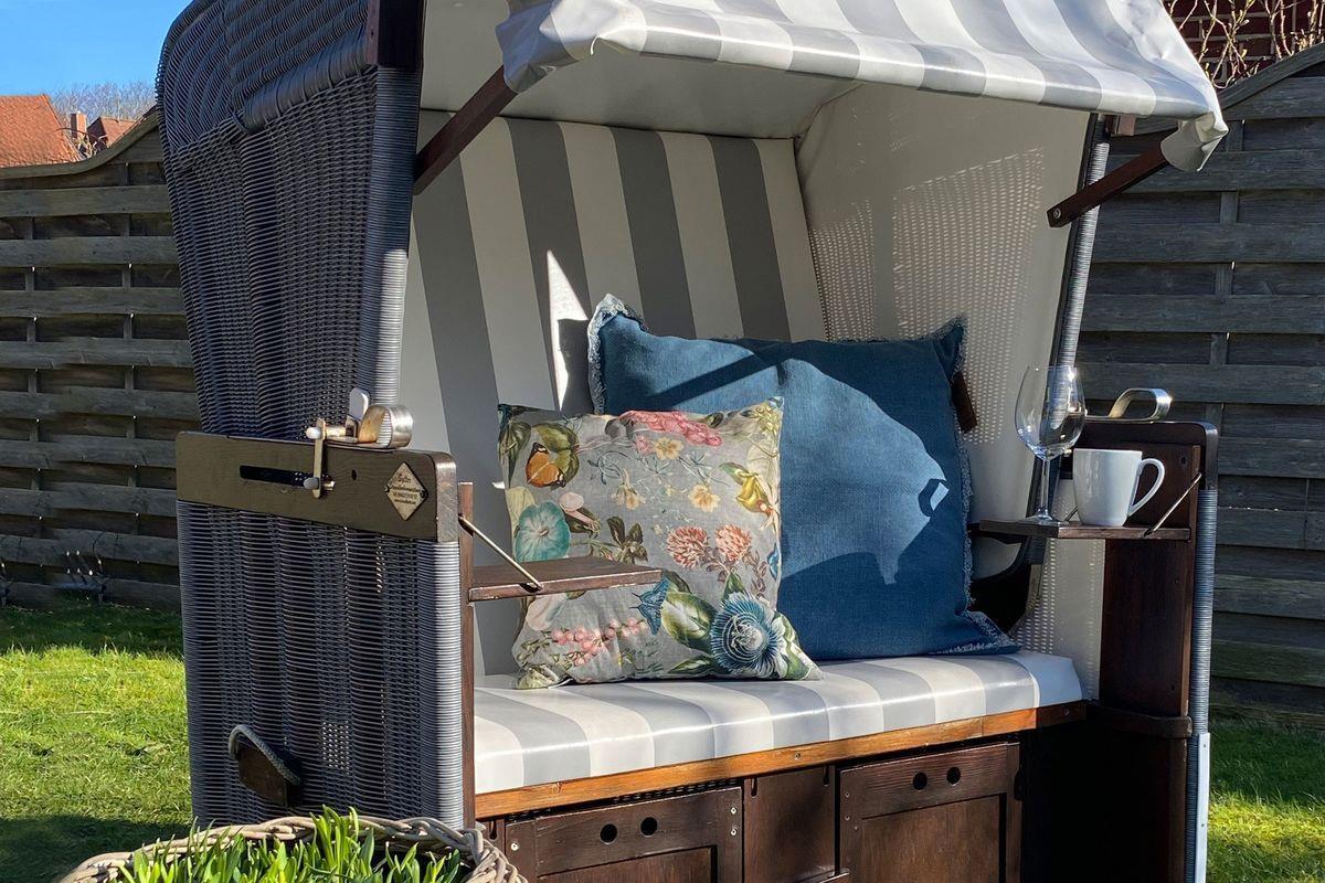 mit einem TV ausgestattet. Bei schönem Wetter lädt auch die Süd-Terrasse mit Gartenmöbeln und Strandkorb zum draußen