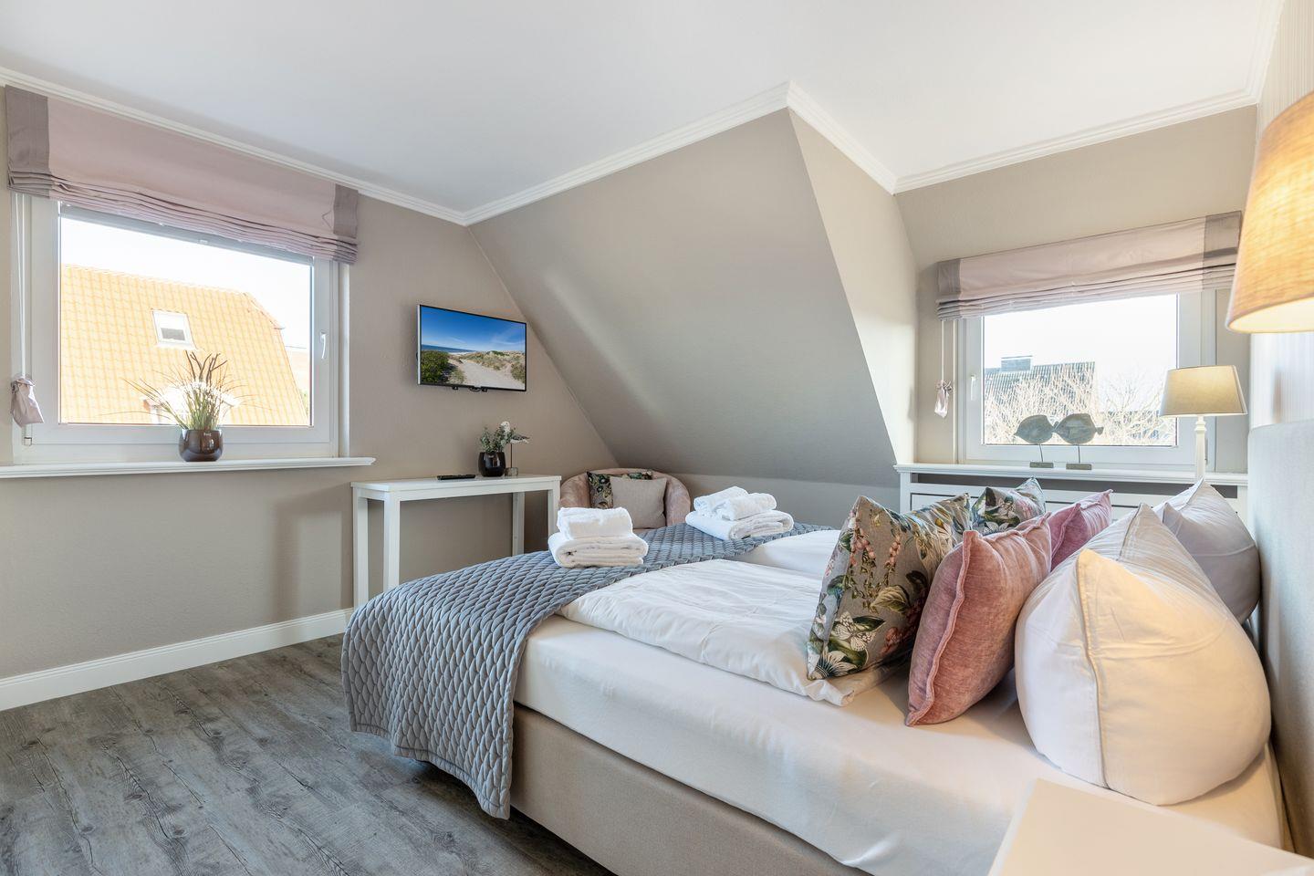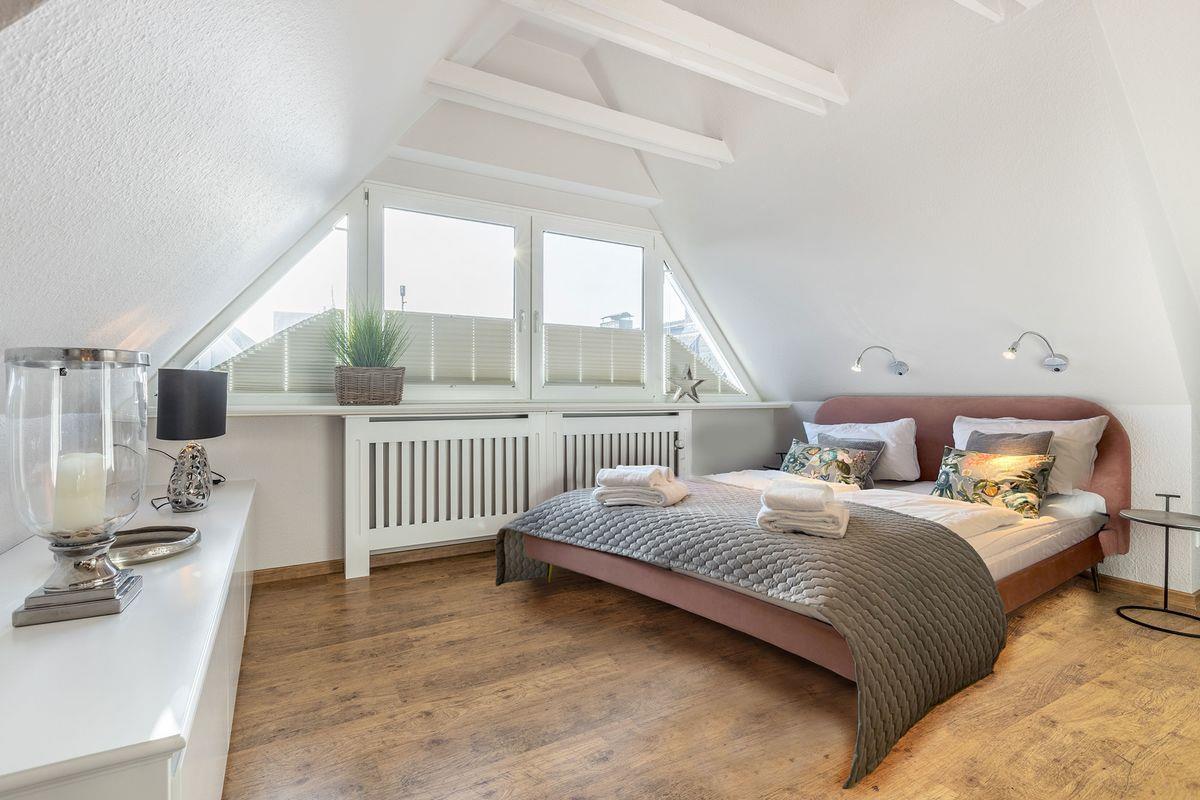 Insgesamt vier Schlafzimmer warten im Haus auf Ihre nächtlichen Besucher – drei davon verfügen über komfortable Boxspringbetten in Hotelqualität, [nbsp]im ausgebauten Dachgeschoss nächtigen